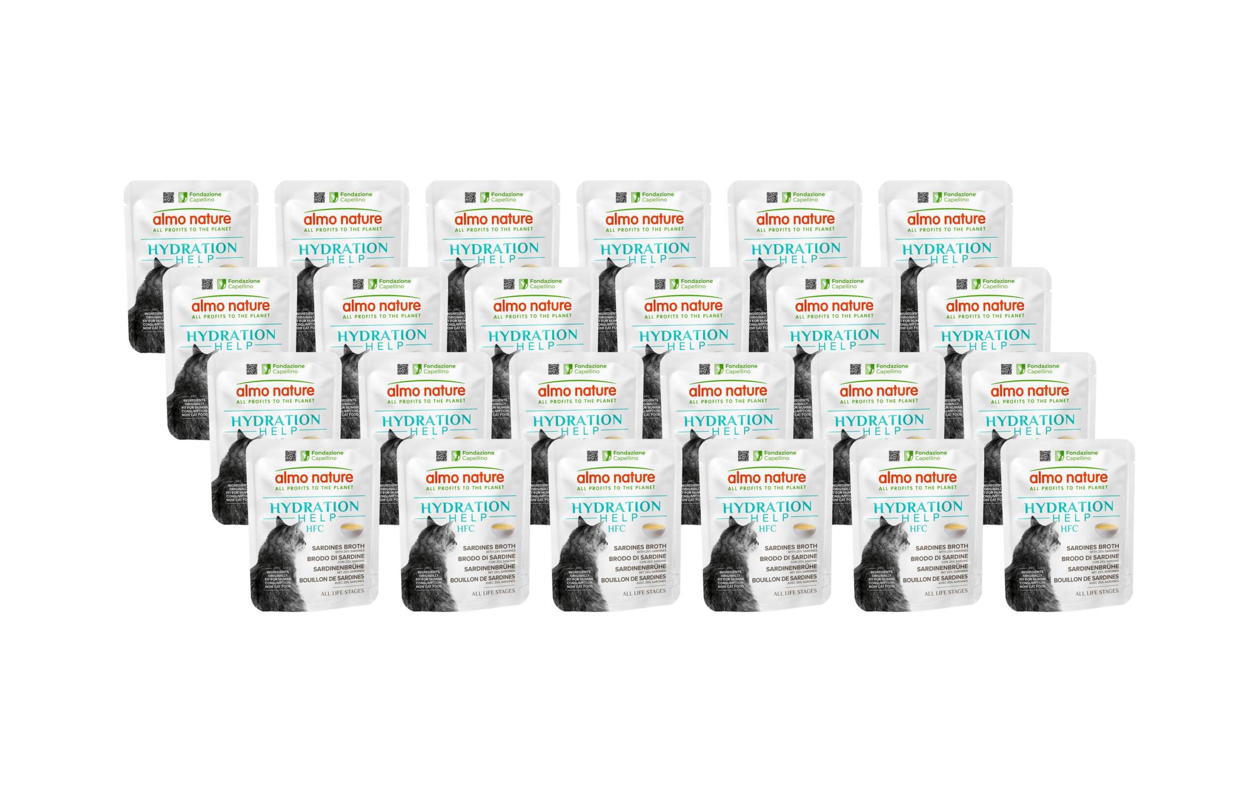 Almo Nature HFC Hydration mit Sardinen und Brühe 24 x 50 g Nahrungsergänzungstyp: Flüssig, Tierbedürfnis: Beruhigung & Wohlbefinden, Flüssigkeitszufuhr, Nieren & Harnwege, Nachhaltigkeit: Nicht angegeben, Cannabinoide: Keine, Lebensphase: Adult (1-7 Jahre), Tierart: Katze