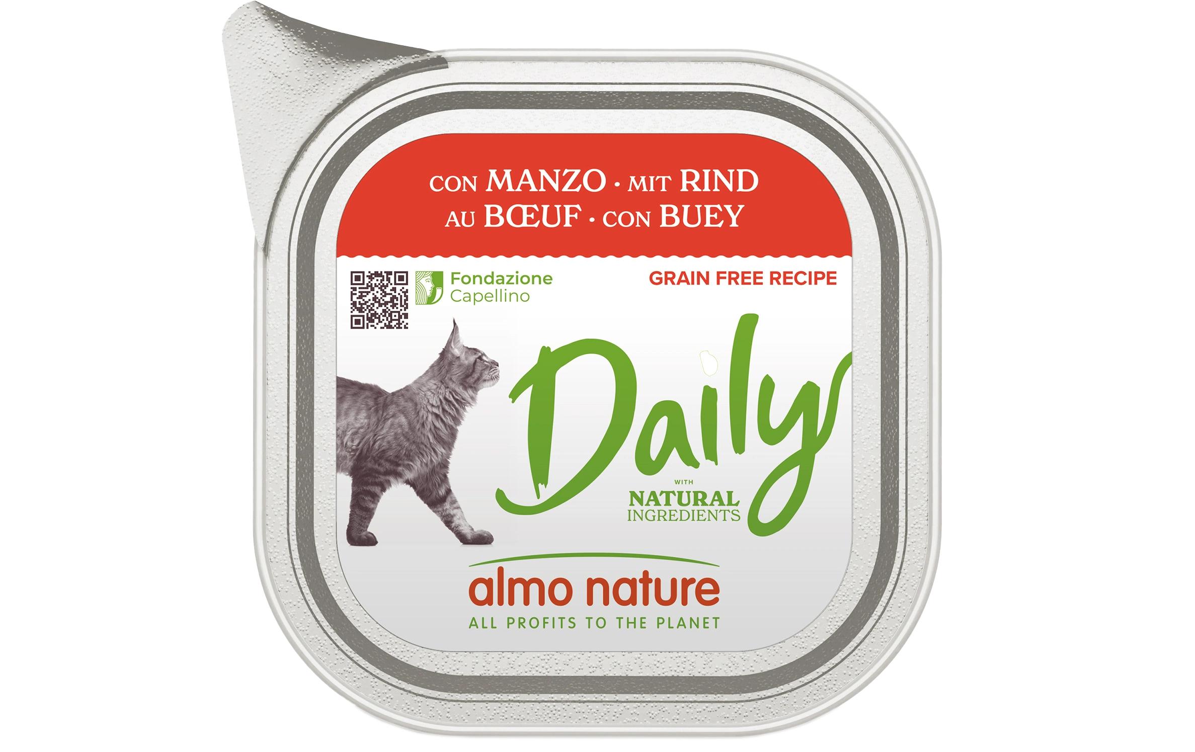 Almo Nature Nassfutter Daily mit Rind 32 x 100g Tierbedürfnis: Kein besonderes Bedürfnis, Lebensphase: Adult (1-7 Jahre), Tierart: Katze, Fleischsorte: Rind, Futtereigenschaft: Glutenfrei, Produkttyp: Alleinfutter