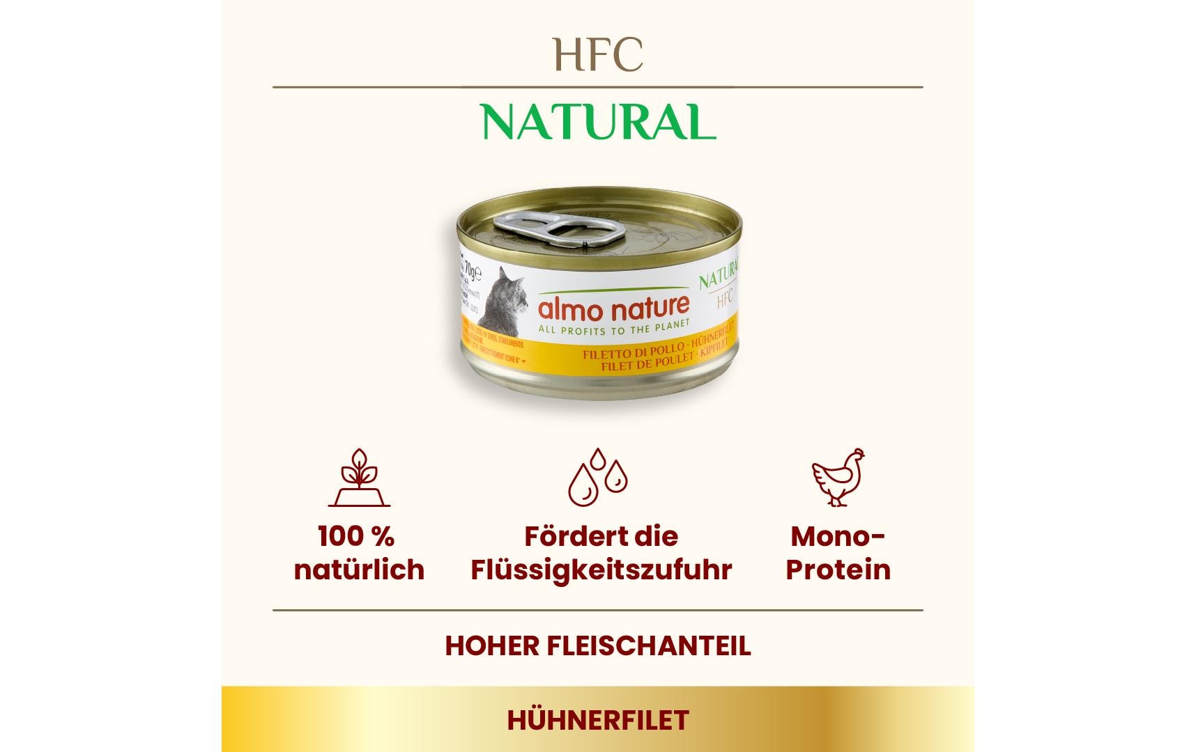 Almo Nature Nassfutter HFC Natural Cat Hühnerfilet 70 g Tierbedürfnis: Kein besonderes Bedürfnis, Lebensphase: Adult (1-7 Jahre), Tierart: Katze, Fleischsorte: Huhn, Futtereigenschaft: Glutenfrei, Produkttyp: Ergänzungsfutter