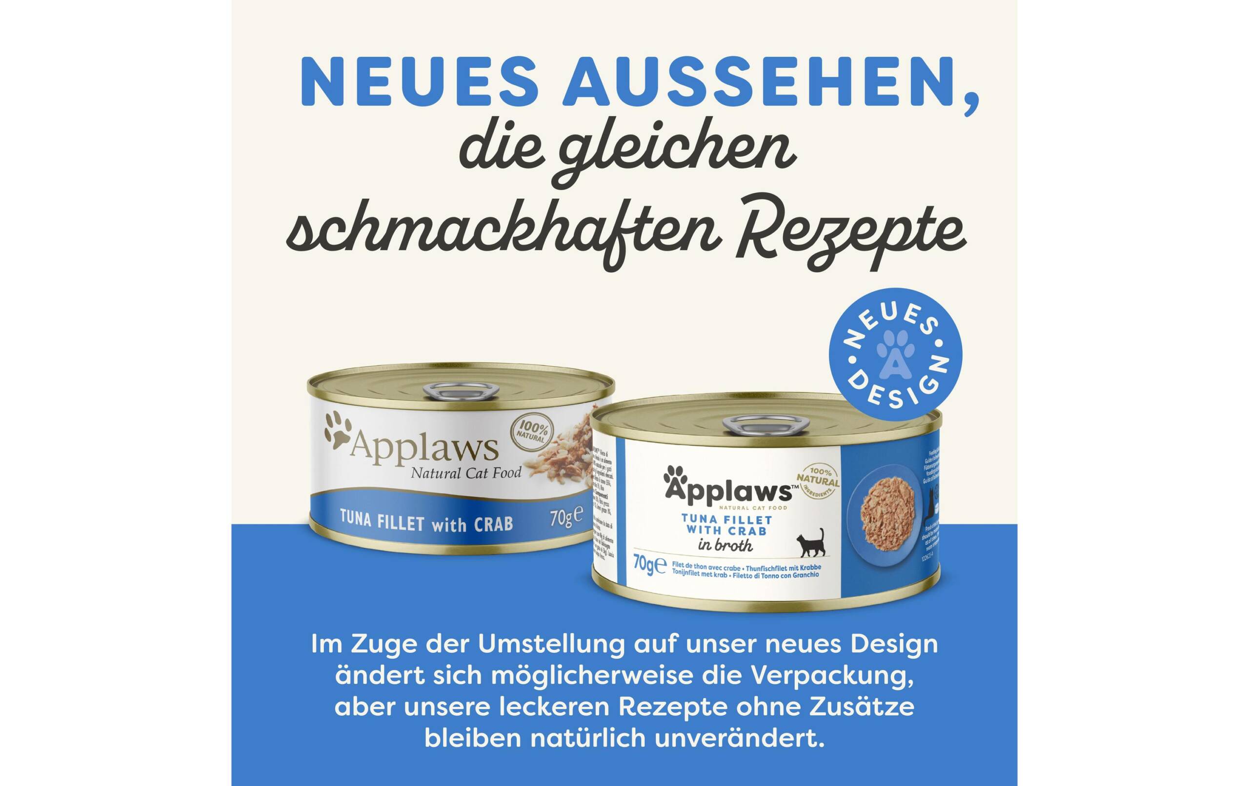 Applaws Nassfutter Dose Thunfischfilet & Krabben, 24 x 70 g Tierbedürfnis: Verdauung, Magen & Darm, Lebensphase: Adult (1-7 Jahre), Tierart: Katze, Fleischsorte: Meereskrebse, Thunfisch, Futtereigenschaft: Glutenfrei, Hoher Fleischanteil, Ohne künstliche Zusätze, Ohne Zuckerzusatz, Produkttyp: Ergänzungsfutter
