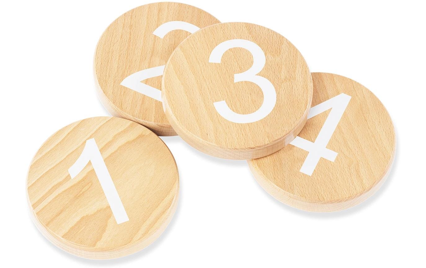 Pinolino Balance Steine mit Zahlen «Kari» 4-teilig Altersempfehlung ab: 2 Jahren, Material: Holz, Nachhaltigkeit: FSC®, Detailfarbe: Nature