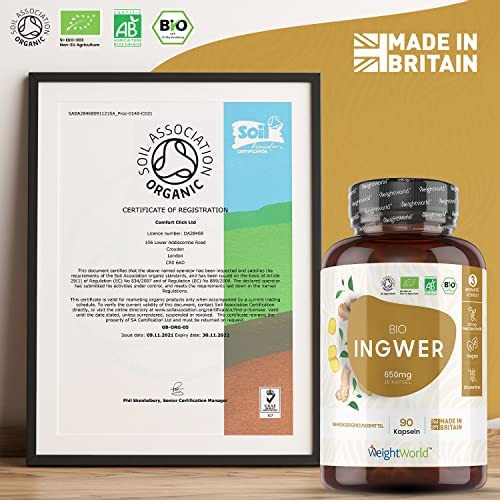 - Optimales Preis-Leistungsverhältnis – Unsere Ingwer Kapseln sind aus natürlichem Pulver und somit auch für Veganer und Vegetarier geeignet. Mit 650mg reines Bio Ingwerpulver in jeder Kapsel ist es eine ideale Nahrungsergänzung zur fairen Preis. Die Kapseln sind leicht zu schlucken und lassen sich gut in Ihren Alltag integrieren.