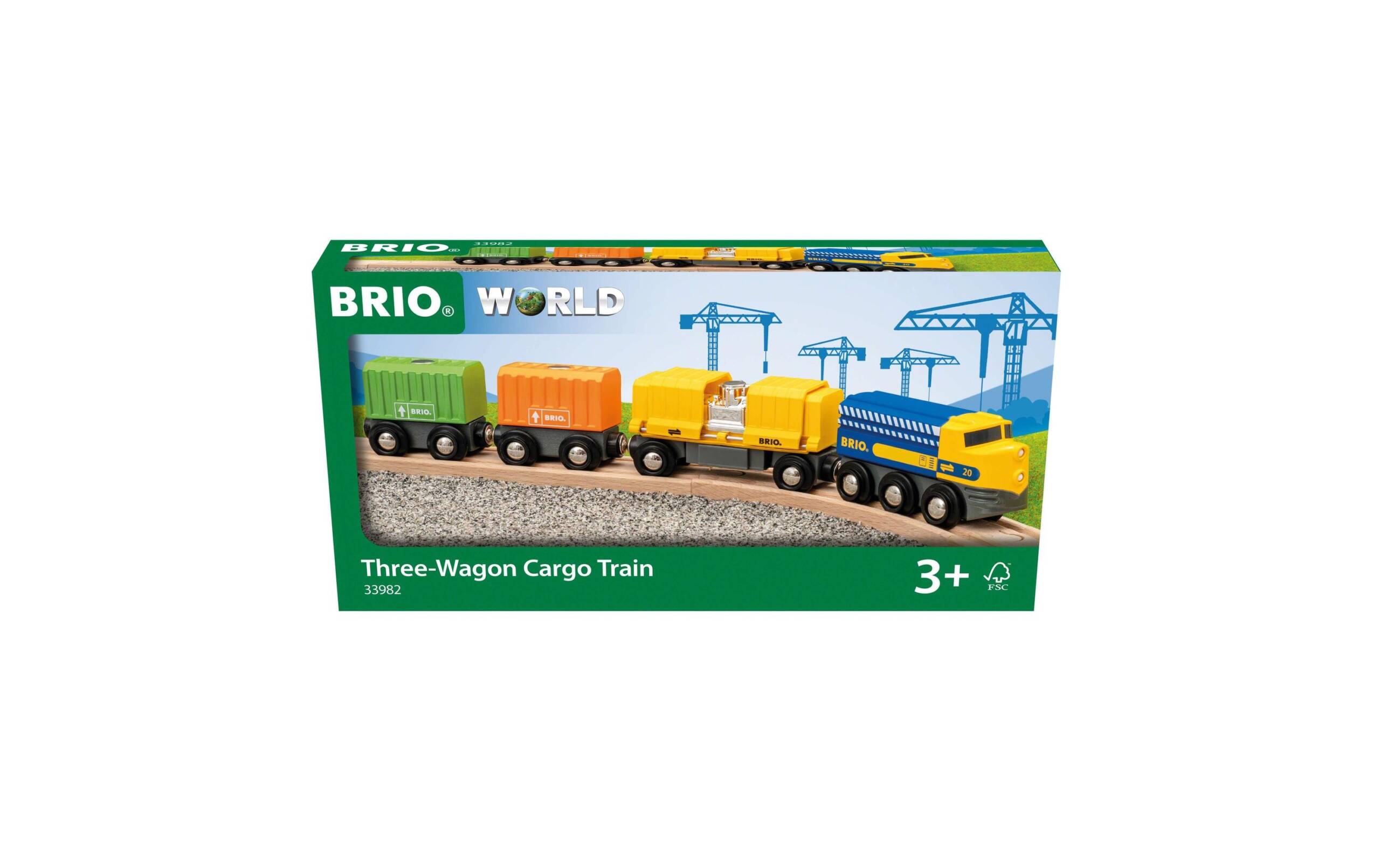 BRIO Eisenbahn Güterzug mit drei Waggons Kategorie: Eisenbahnwagen & Lokomotiven, Altersempfehlung ab: 3 Jahren, Material: Holz, Kunststoff, Metall, Nachhaltigkeit: Nicht angegeben