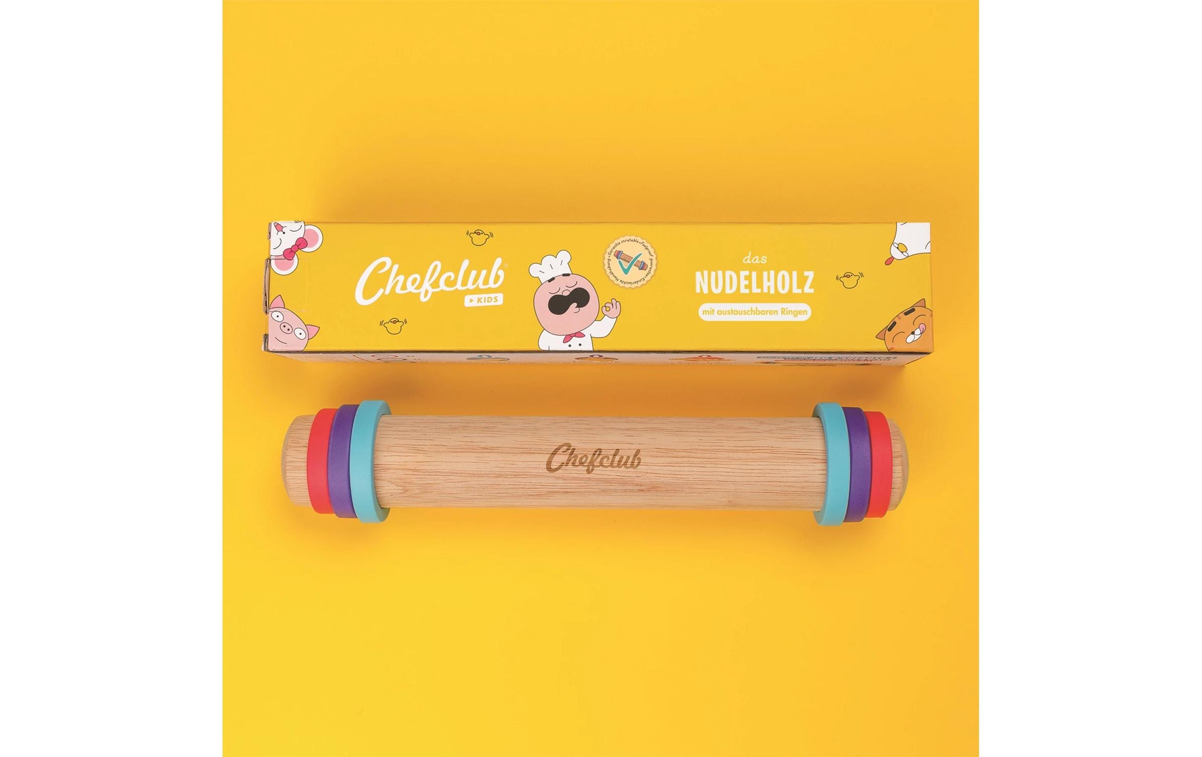 Chefclub Nudelholz mit Silikonringen 30 cm Art: Kinderkochset, Materialtyp: Holz, Material: Holz, Silikon, Spülmaschinenfest: Nein, Detailfarbe: Mehrfarbig