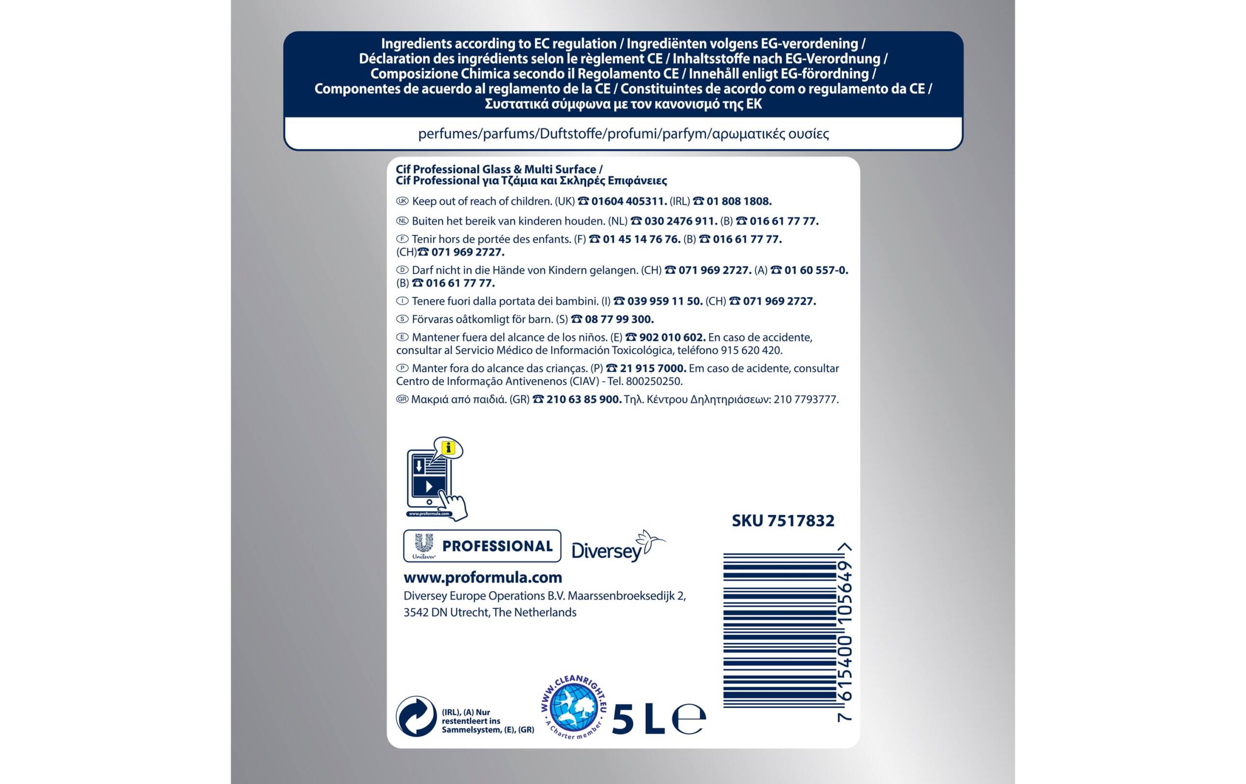 Diversey Pro Formula Glasreiniger Cif Professional 5 l Packungsgrösse: 5 l, Einsatzgebiet: Fenster, Glas, Spiegel, Tisch, Natürlich Leben: Keine Besonderheiten, Eigenschaft: Flüssig
