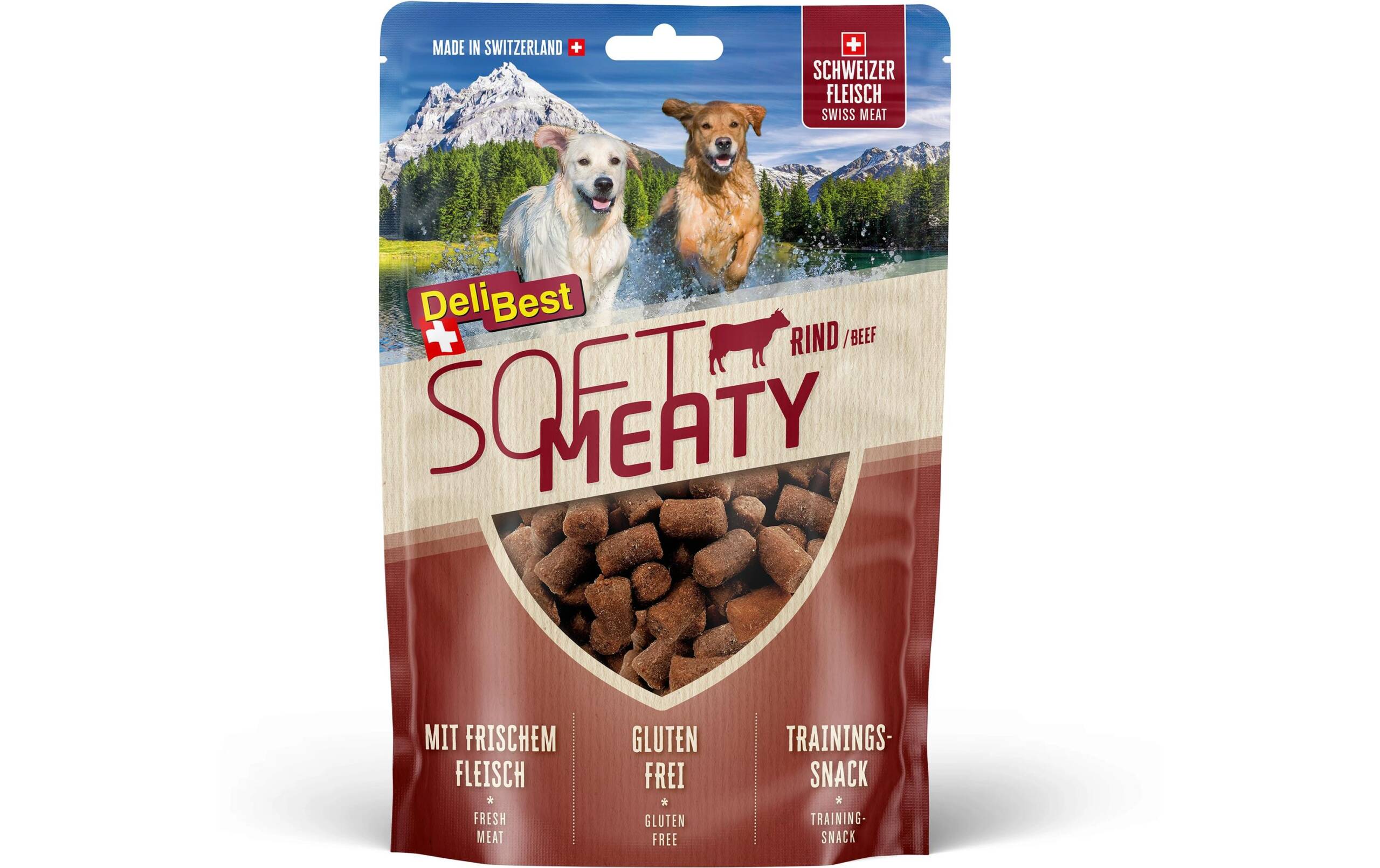 DeliBest Soft Meatys Rind, 150 g Snackart: Biscuits, Tierbedürfnis: Kein besonderes Bedürfnis, Nachhaltigkeit: Nicht angegeben, Tierart: Hund, Fleischsorte: Rind, Futtereigenschaft: Glutenfrei