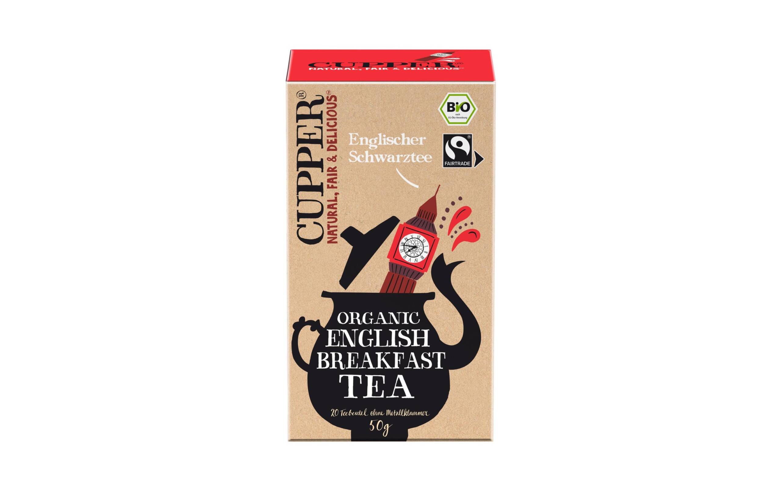 Cupper Teebeutel Bio English Breakfast 20 Stück Teesorte/Infusion: Schwarztee, Nachhaltigkeit: EU BIO, Fairtrade Max Havelaar, Packungsgrösse: 20 Stück, Fairtrade: Ja, Teeform: Teebeutel, Bio: Ja