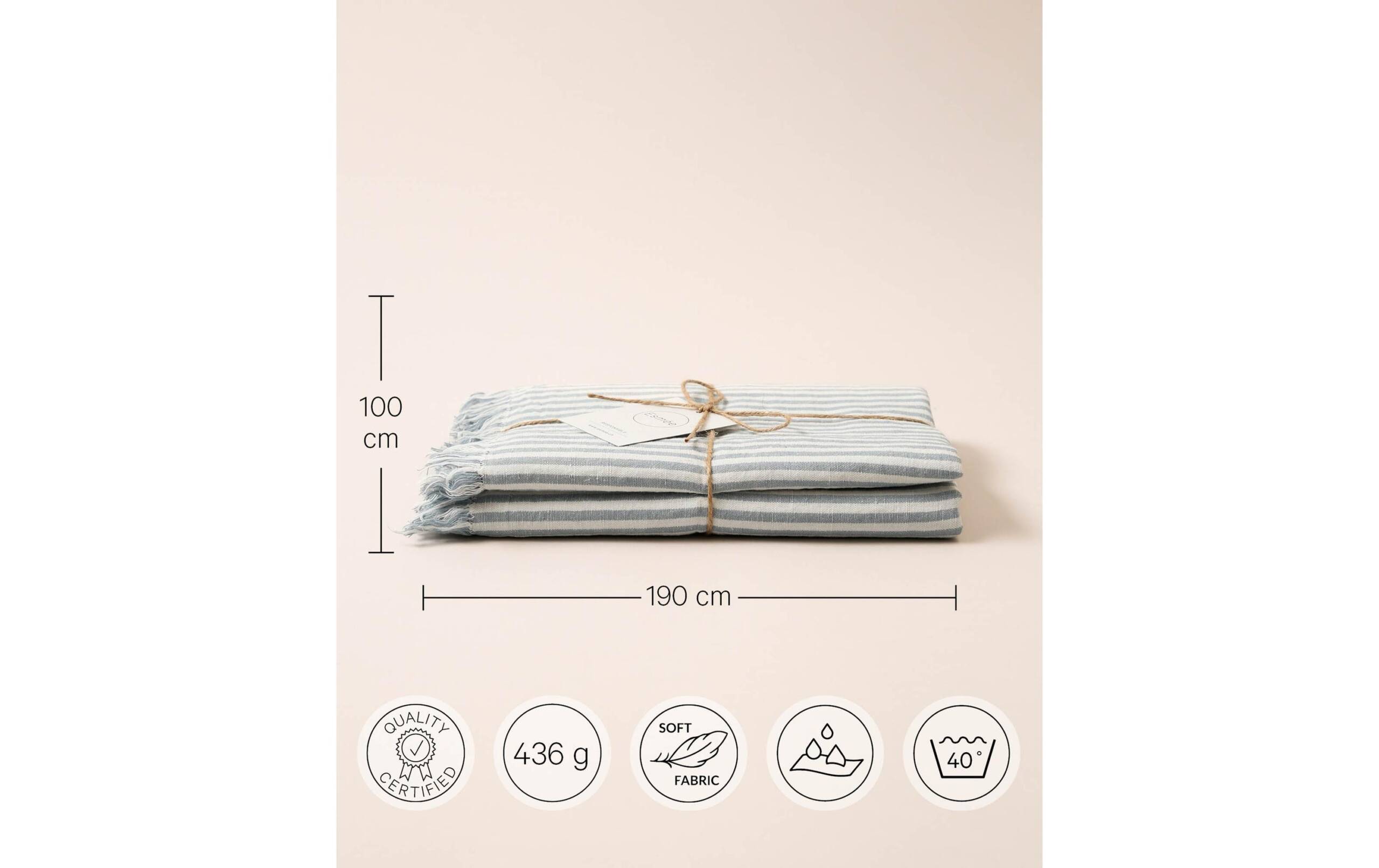 Esmée Strandtuch -Set Sol 100 x 190 cm, Weiss/Blau Schnelltrocknend: Ja, Nachhaltigkeit: Global Organic Textile Standard (GOTS), Breite: 100 cm, Länge: 190 cm, Farbe: Blau, Weiss, Material: Bio Baumwolle, Leinen