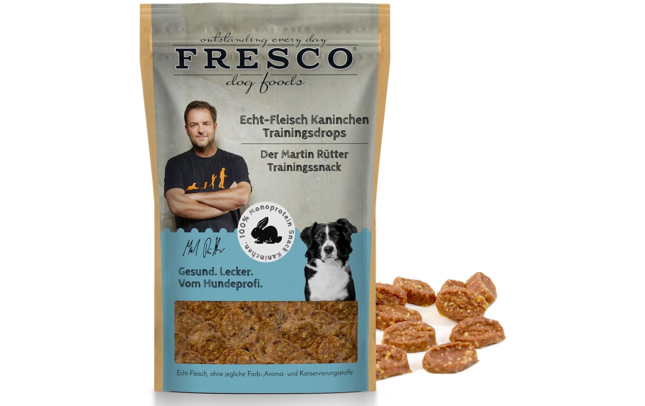 FRESCO Leckerli Martin Rütter Trainingsdrops Kaninchen, 150g Snackart: Leckerli, Tierbedürfnis: Kein besonderes Bedürfnis, Nachhaltigkeit: Nicht angegeben, Tierart: Hund, Fleischsorte: Kaninchen, Futtereigenschaft: Getreidefrei, Glutenfrei, Hoher Fleischanteil, Ohne künstliche Zusätze, Ohne Zuckerzusatz, Single Protein
