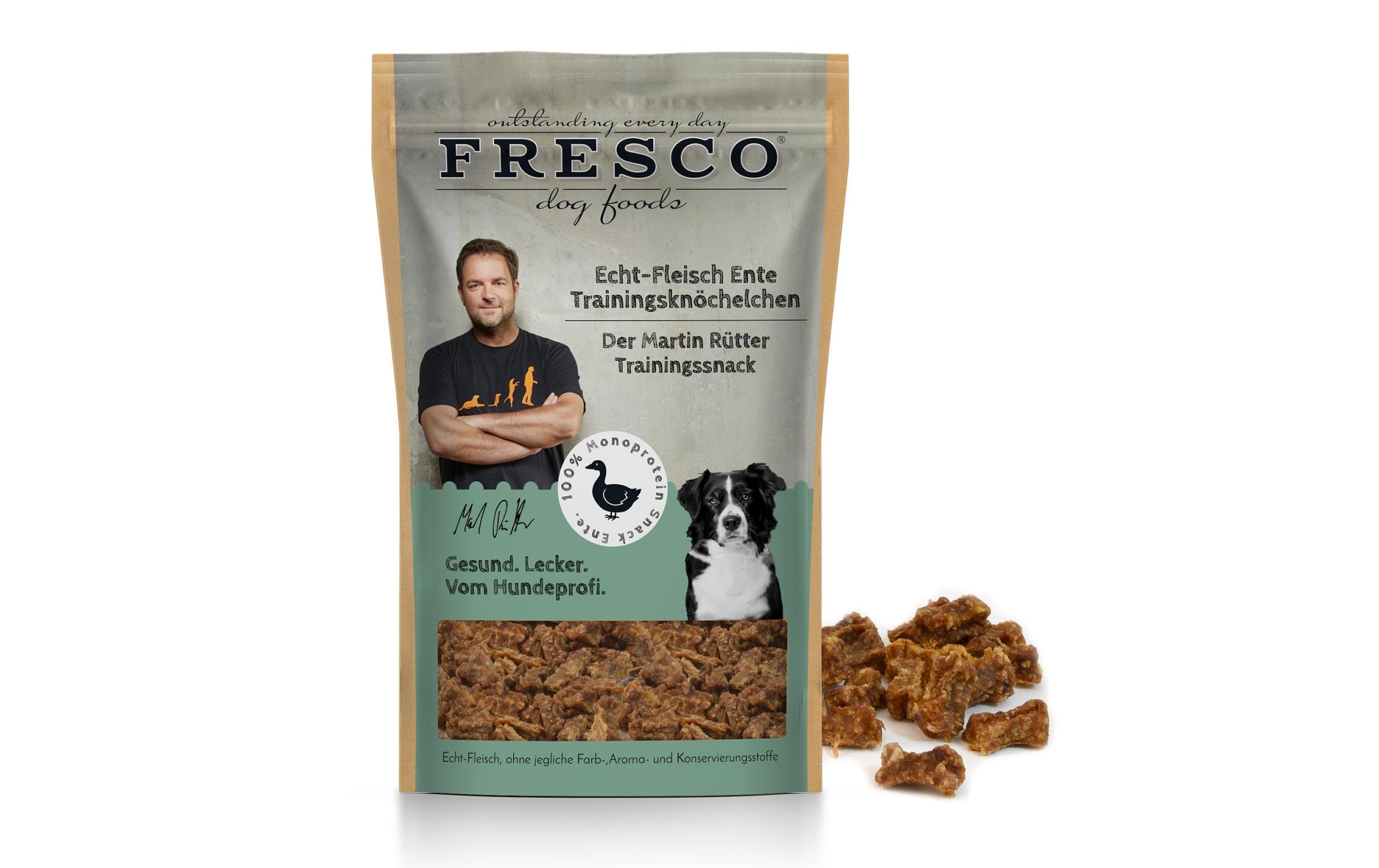 FRESCO Leckerli Martin Rütter Trainingsknöchelchen Ente, 150 g Snackart: Leckerli, Tierbedürfnis: Kein besonderes Bedürfnis, Nachhaltigkeit: Nicht angegeben, Tierart: Hund, Fleischsorte: Ente, Futtereigenschaft: Getreidefrei, Glutenfrei, Hoher Fleischanteil, Ohne künstliche Zusätze, Ohne Zuckerzusatz, Single Protein