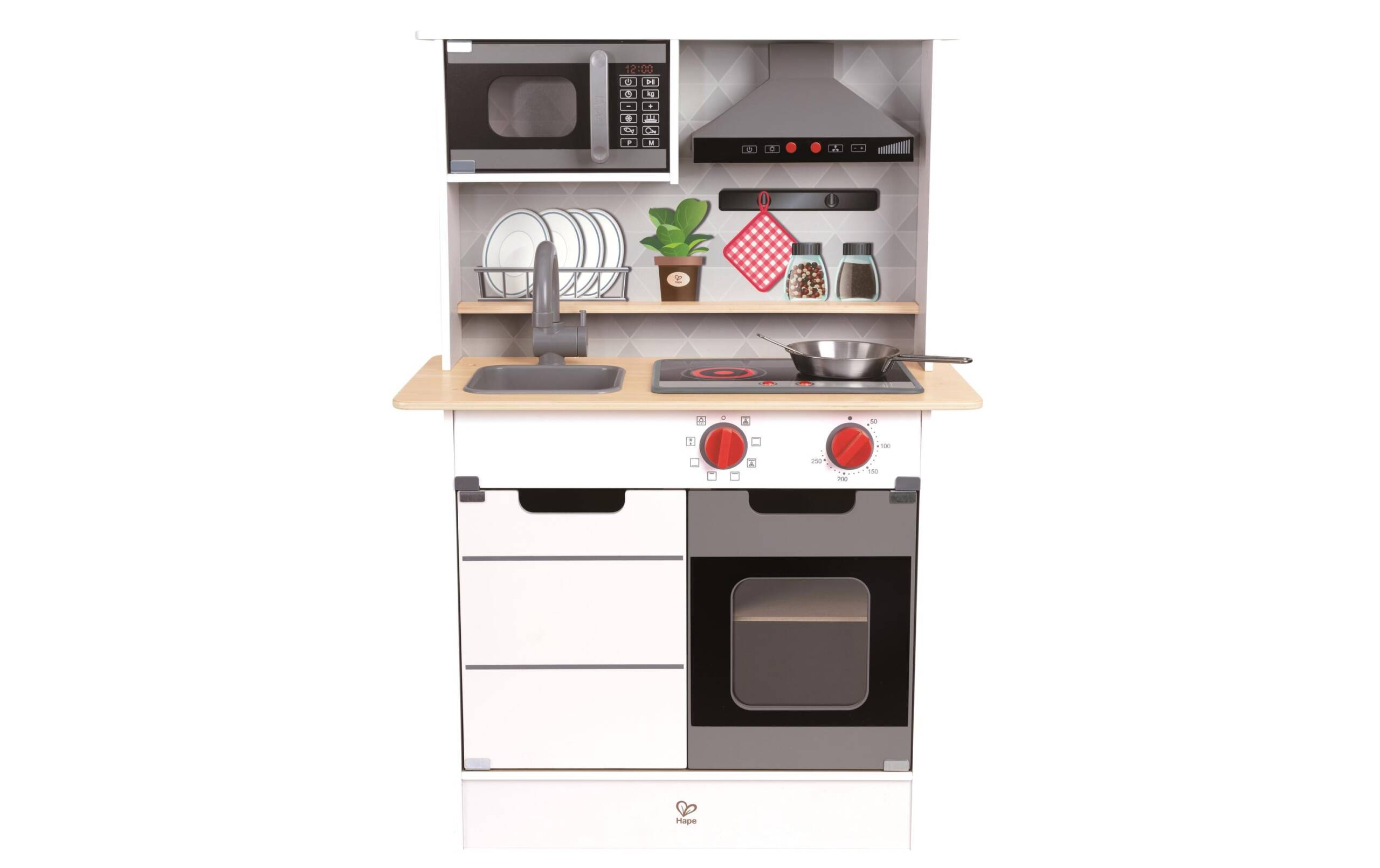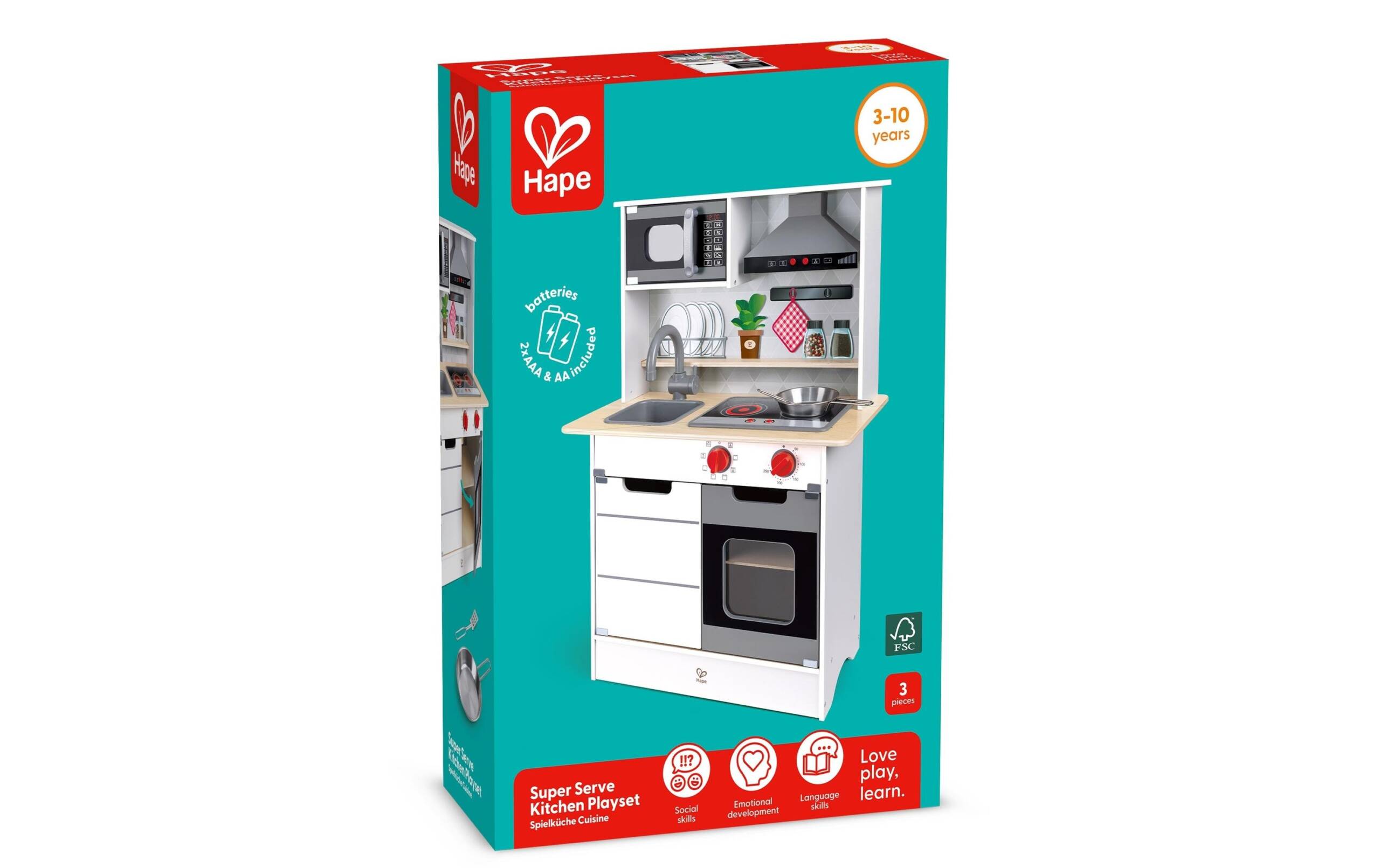 Hape Küche mit Licht- und Sound Laden: Küche, Altersempfehlung ab: 3 Jahren, Material: Edelstahl, FSC®-Holz, Kunststoff, MDF, Sperrholz, Nachhaltigkeit: FSC®