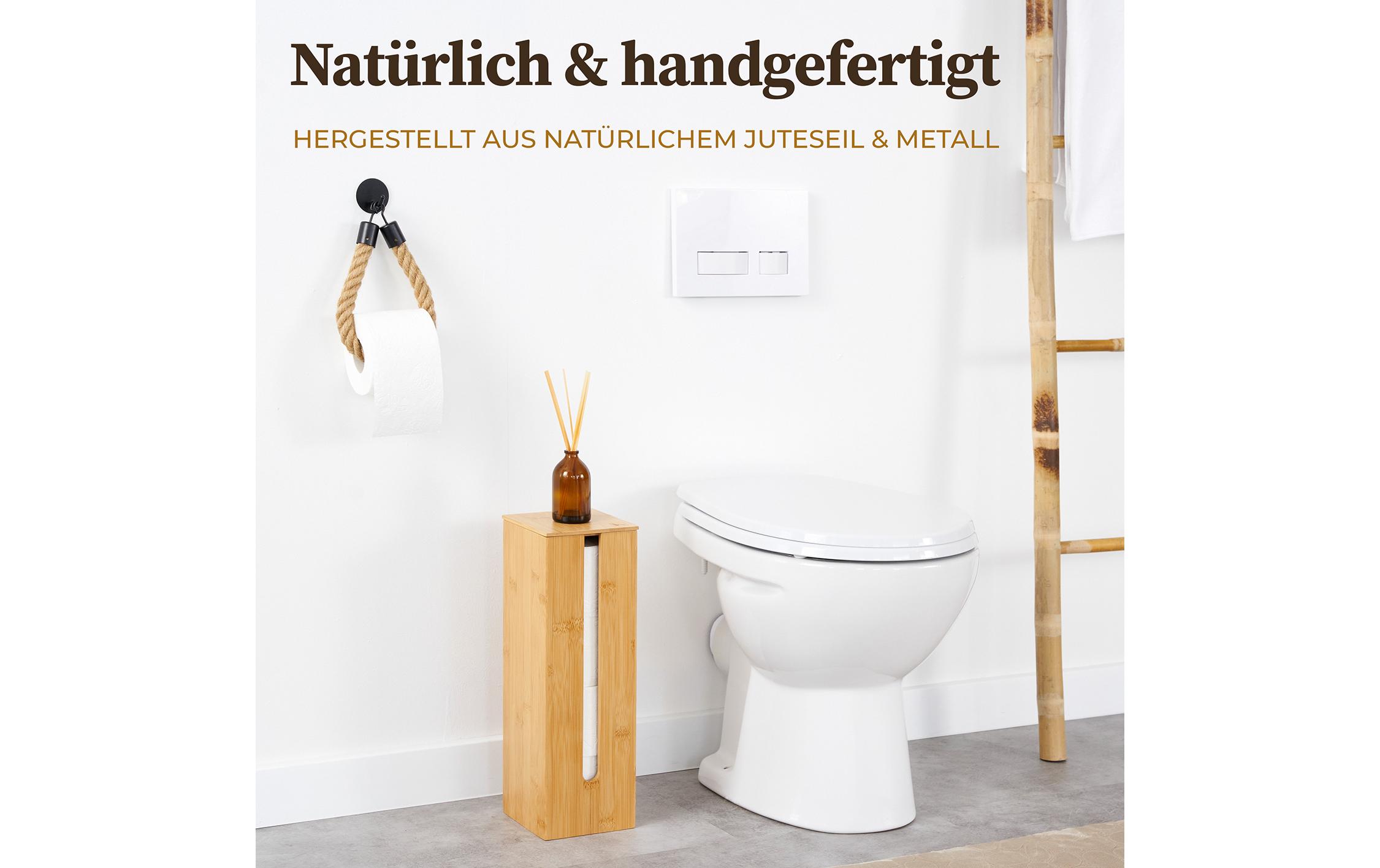 Hennez Toilettenpapierhalter Rope Stick Nature/Schwarz Detailmaterial: Bambus, Metall, Grundmaterial: Bambus, Metall, Anzahl Rollen: 1, Befestigung: Kleben, Detailfarbe: Nature, Schwarz, Aufhängevorrichtung: Ja