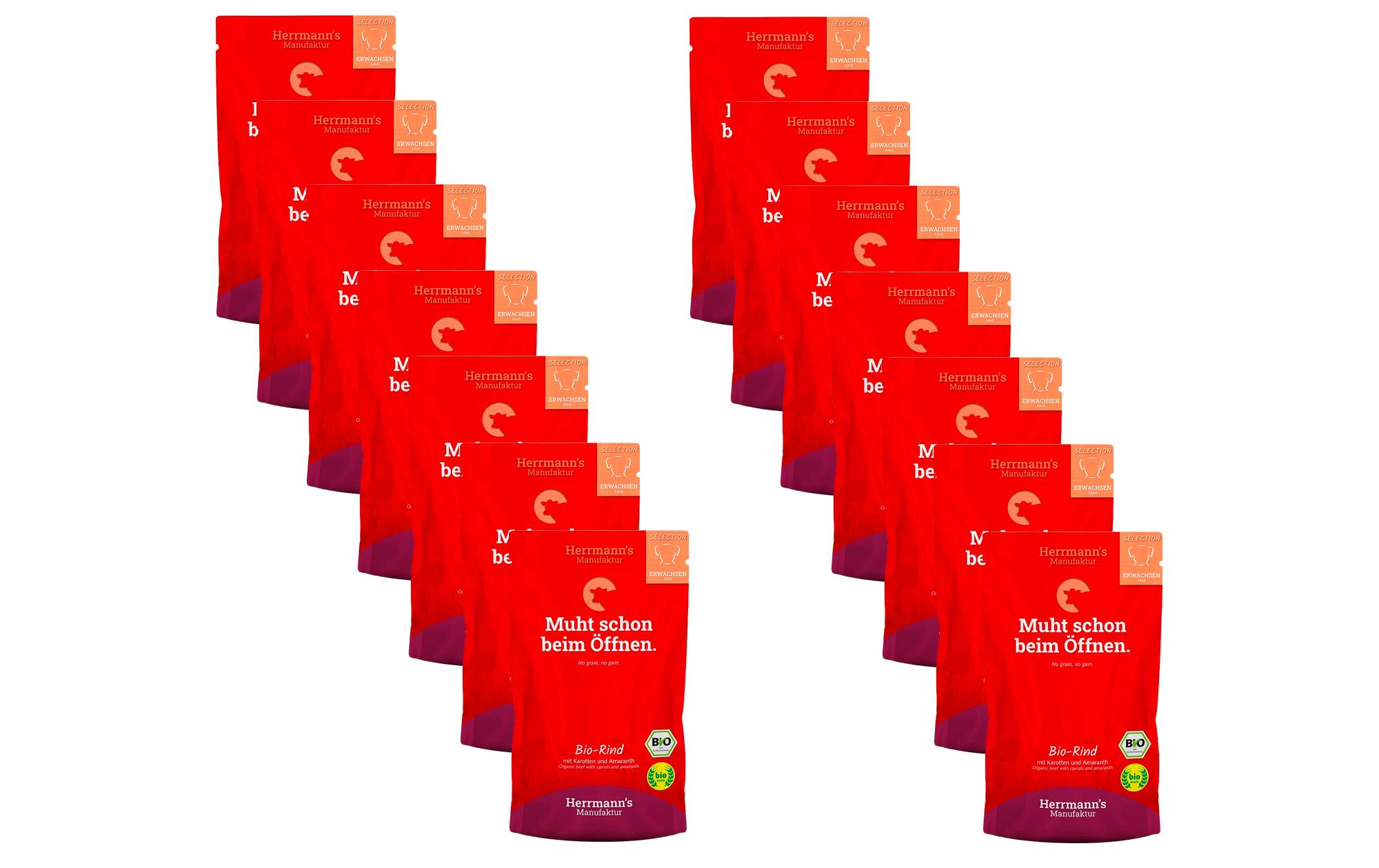 Herrmann’s Nassfutter Bio Rind mit Karotten und Amaranth 14 x 150 g Tierbedürfnis: Kein besonderes Bedürfnis, Nachhaltigkeit: EU BIO, Lebensphase: Adult, Tierart: Hund, Fleischsorte: Rind, Futtereigenschaft: Bio, Getreidefrei, Glutenfrei, Hoher Fleischanteil, Ohne künstliche Zusätze, Ohne Zuckerzusatz, Single Protein