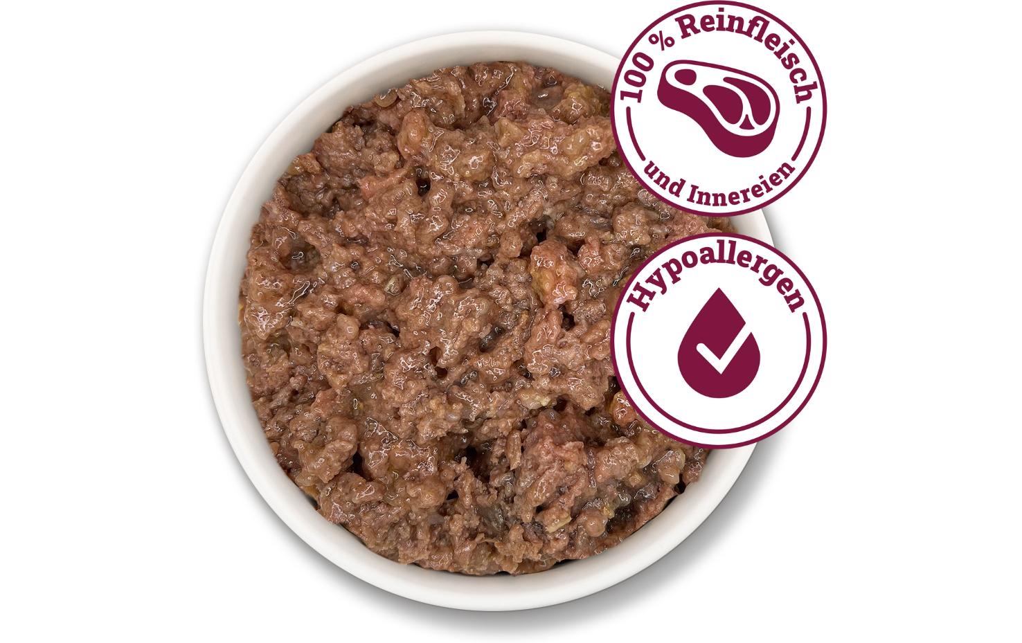 Herrmann’s Nassfutter Pferd Reinfleisch 800 g Tierbedürfnis: Kein besonderes Bedürfnis, Zertifikate: Keine Zertifizierung, Fleischsorte: Pferd, Futtereigenschaft: Hoher Fleischanteil, Hypoallergen, Ohne künstliche Zusätze, Ohne Zuckerzusatz, Single Protein, Produkttyp: Alleinfutter, Ergänzungsfutter, Packungsgrösse: 800 g