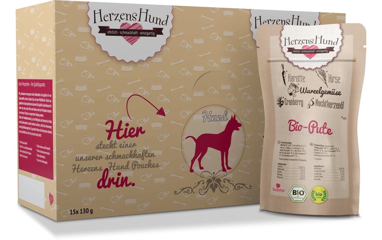 HerzensHund Nassfutter Bio-Pute mit Bio-Gemüse, 130 g Tierbedürfnis: Kein besonderes Bedürfnis, Nachhaltigkeit: EU BIO, Lebensphase: Adult, Tierart: Hund, Fleischsorte: Truthahn, Futtereigenschaft: Bio, Glutenfrei, Hoher Fleischanteil, Ohne künstliche Zusätze, Ohne Zuckerzusatz, Single Protein
