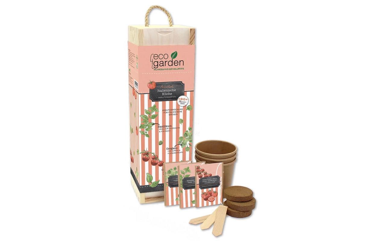 Feel Green EcoGarden – Italienische Küche BIO Sonneneinstrahlung: Hell und warm, Aussaatzeit: Ganzjährig, Saattyp: Urban Gardening, Gemüsegruppen: Kräuter, Erntezeit: Ganzjährig, Bio Zertifizierung: EU-Bio