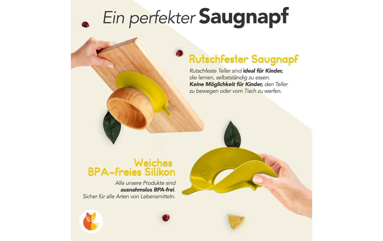 Kleinfuchs Kinderteller Bambus Hund Gelb Art: Kindergeschirrset, Materialtyp: Holz, Material: Holz, Spülmaschinenfest: Nein, Detailfarbe: Gelb