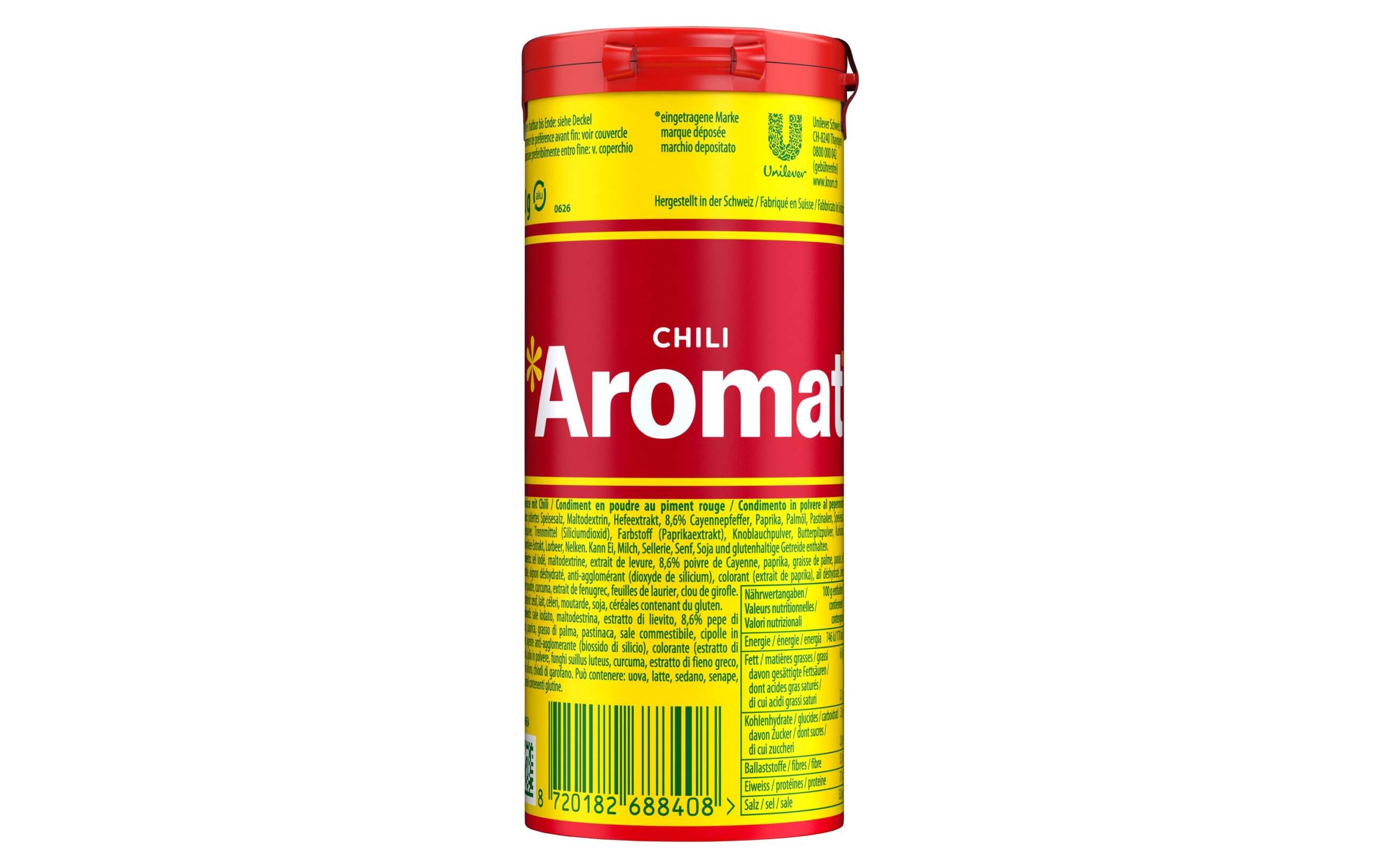 Knorr Gewürz Aromat Chili Streuwürze 90 g Produkttyp: Gewürzmischungen, Ernährungsweise: Vegan, Vegetarisch, Produktionsland: Schweiz, Nachhaltigkeit: Nicht angegeben, Packungsgrösse: 90 g, Fairtrade: Nein