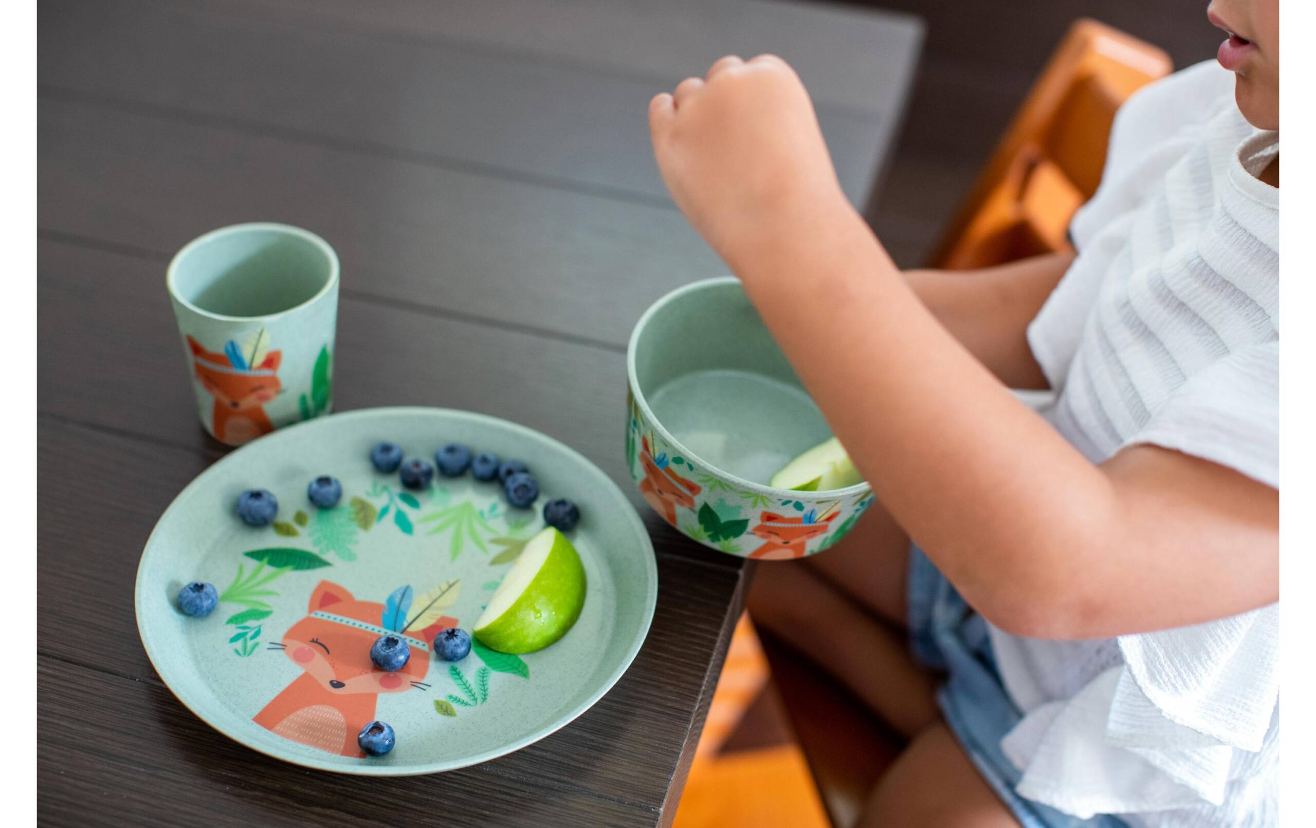 Koziol Kindergeschirrset Connect Harry 3-teilig Art: Kindergeschirrset, Materialtyp: Biokunststoff, Material: Biozirkulärer Kunststoff, Spülmaschinenfest: Ja, Detailfarbe: Grün, Mint