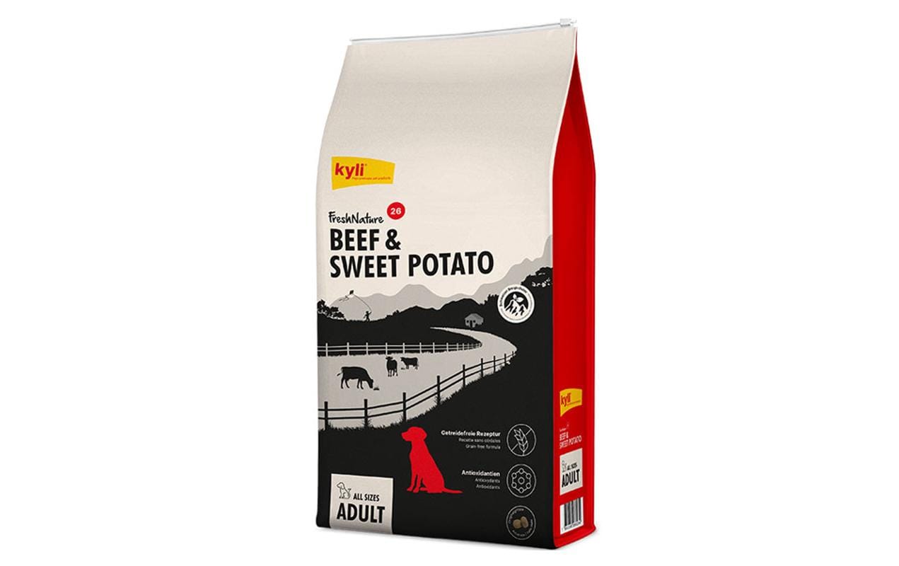kyli Trockenfutter FreshNature Nr. 26 Beef, 3 kg Tierbedürfnis: Haut & Fell, Zertifikate: Keine Zertifizierung, Fleischsorte: Rind, Futtereigenschaft: Getreidefrei, Ohne künstliche Zusätze, Ohne Zuckerzusatz, Produkttyp: Alleinfutter, Packungsgrösse: 3 kg