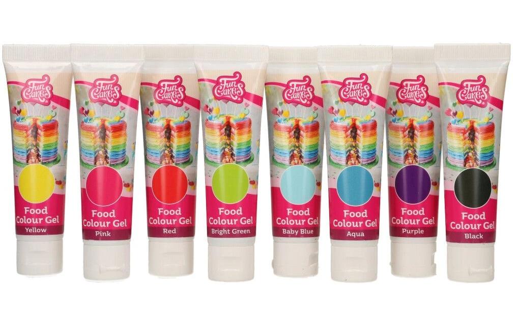 Funcakes Lebensmittelfarben-Set 8 Stück, mehrfarbig Nachhaltigkeit: Nicht angegeben, Packungsgrösse: 260 g, Fairtrade: Nein, Bio: Nein, Eigenschaft: Gel, Detailfarbe: Blau, Gelb, Grün, Hellblau, Rosa, Rot, Schwarz, Violett