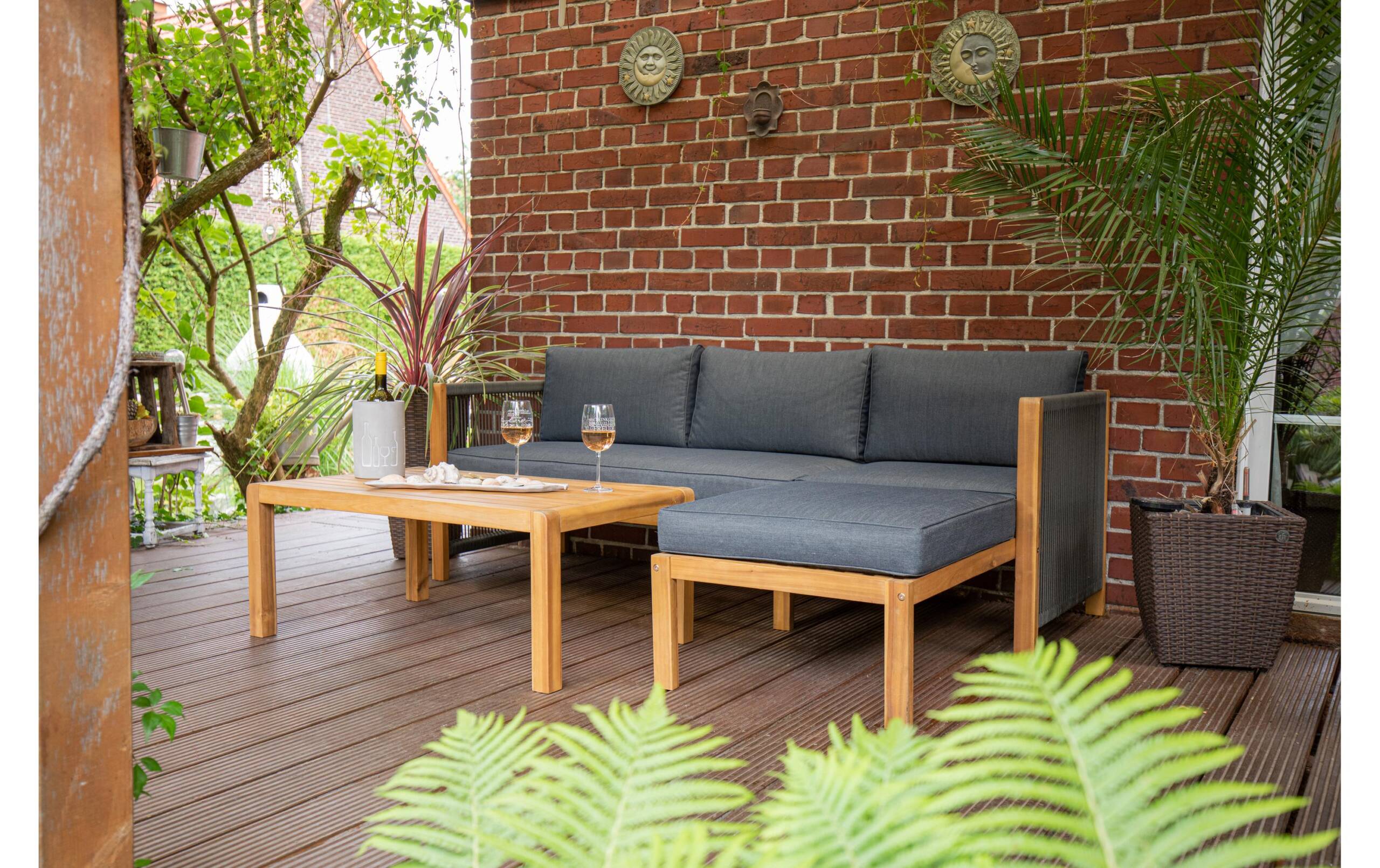 Acamp Loungeset Malaga Schwarz/Braun, 3 Sitzplätze Anzahl Sitzplätze: 3, Material: FSC®-Holz, Set: Ja, Detailfarbe: Braun, Schwarz, Produkttyp: Lounge-Set