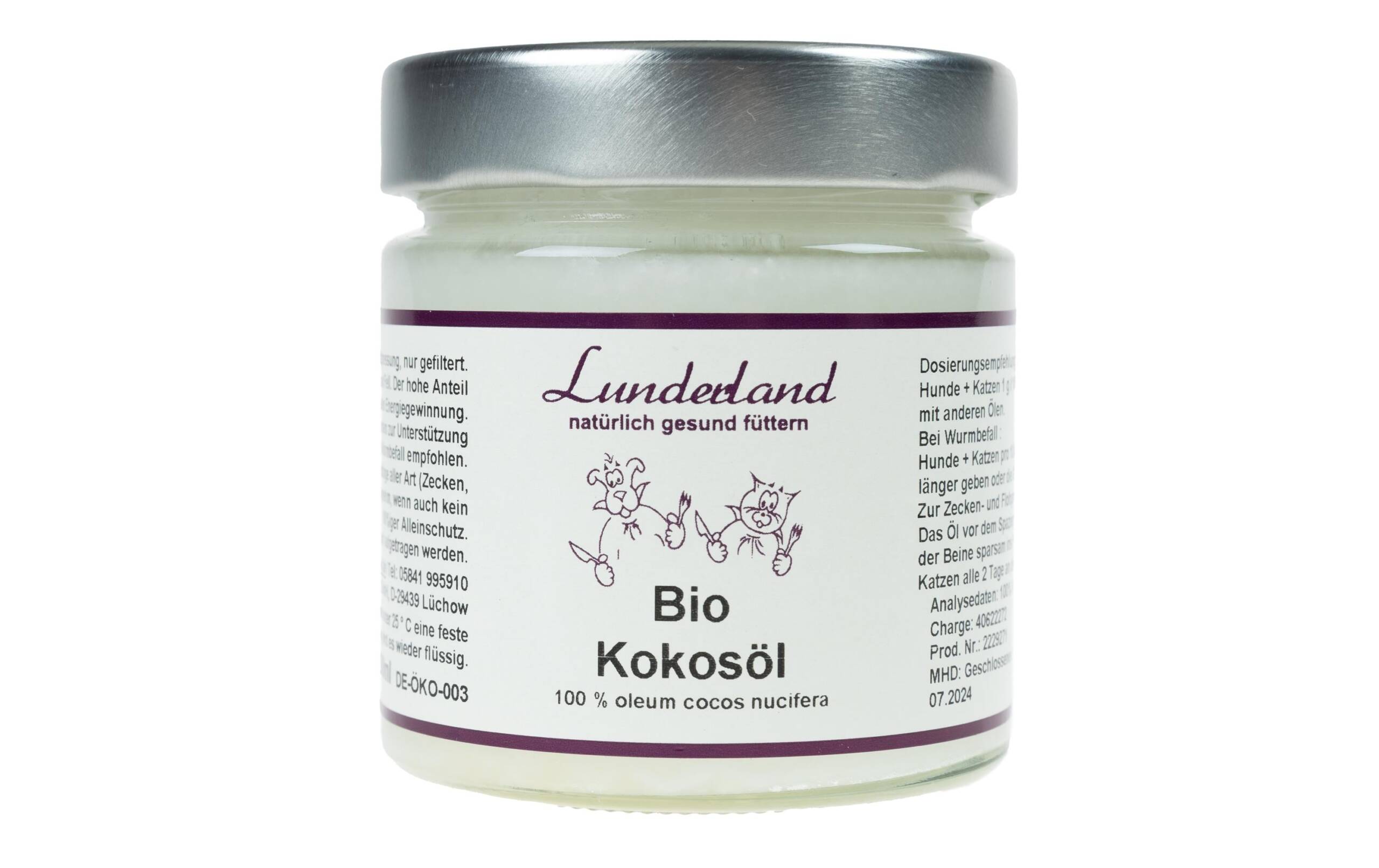 Lunderland Hunde-Nahrungsergänzung Bio-Kokosöl, 200 g Nahrungsergänzungstyp: Flüssig, Tierbedürfnis: Haut & Fell, Zertifikate: EU BIO, Produkttyp: Ergänzungsfutter, Packungsgrösse: 200 g, Cannabinoide: Keine