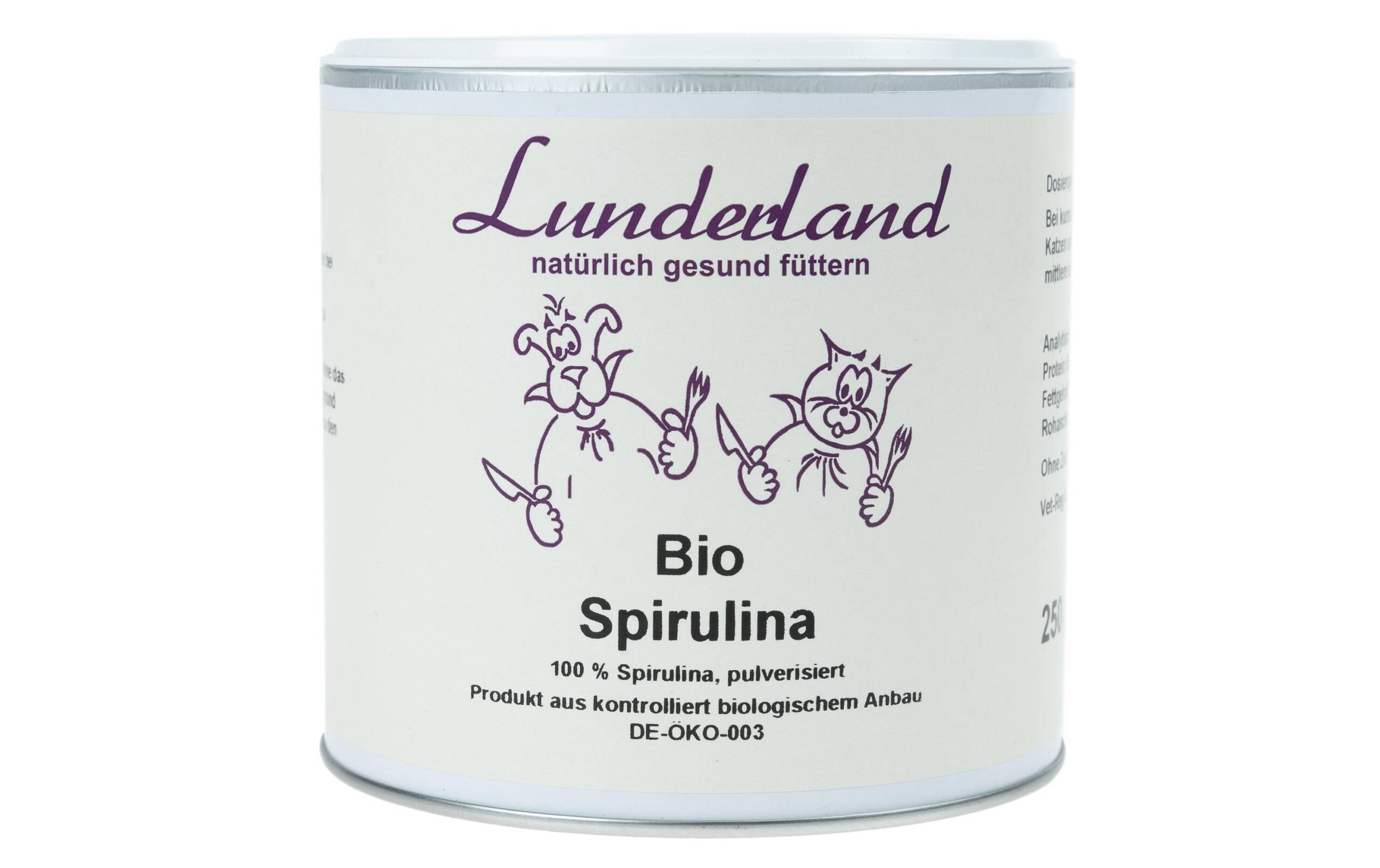 Lunderland Hunde-Nahrungsergänzung Bio-Spirulina, 250 g Nahrungsergänzungstyp: Pulver, Tierbedürfnis: Haut & Fell, Nachhaltigkeit: EU BIO, Cannabinoide: Keine, Tierart: Hund, Katze, Produkttyp: Ergänzungsfutter