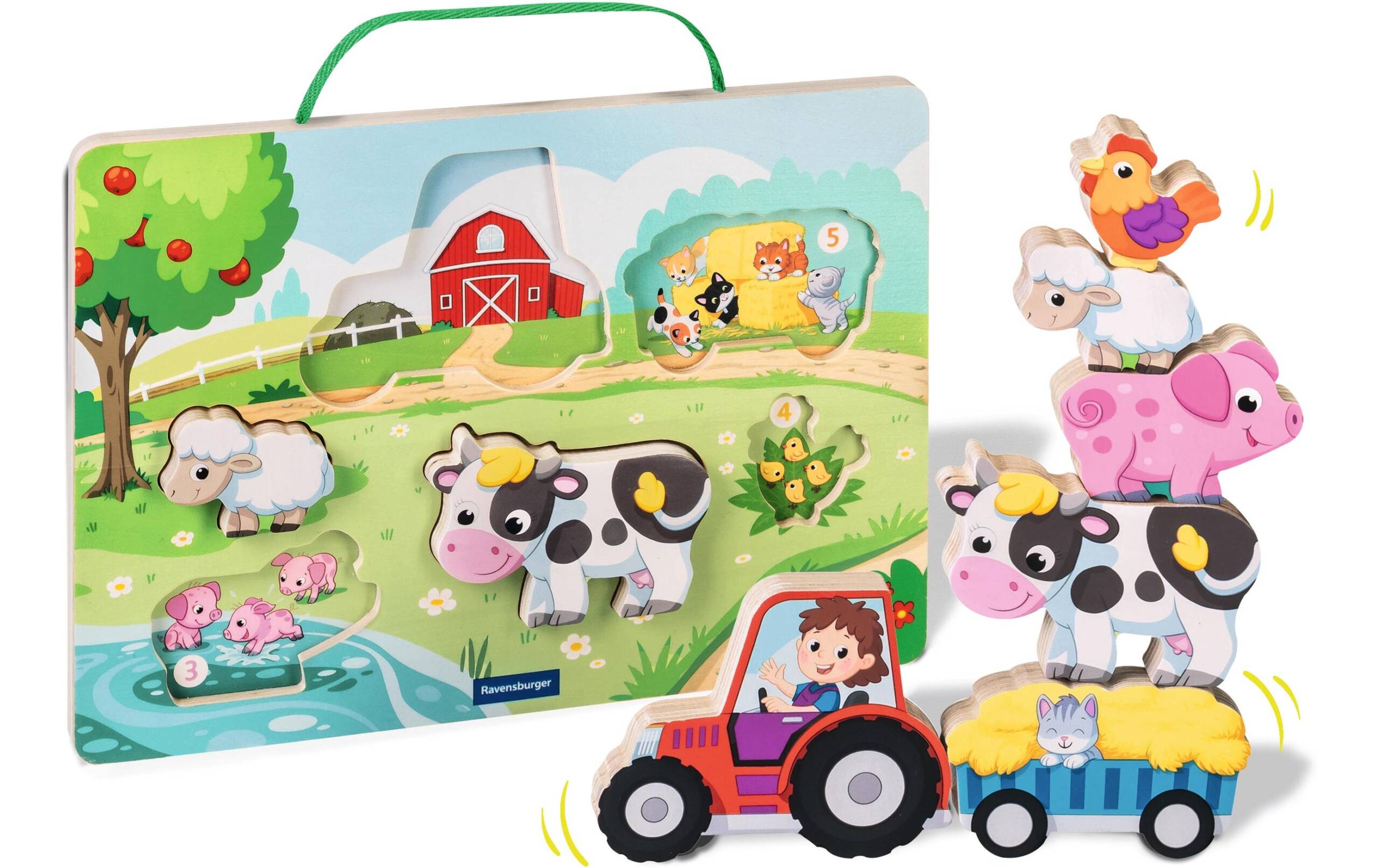 play+ Magnetisches Holz-Zähl-Puzzle: Bauernhof Motiv: Tiere, Altersempfehlung ab: 12 Monaten, Tiefe: 0 cm, Breite: 0 cm, Effekte: Keine, Nachhaltigkeit: FSC®