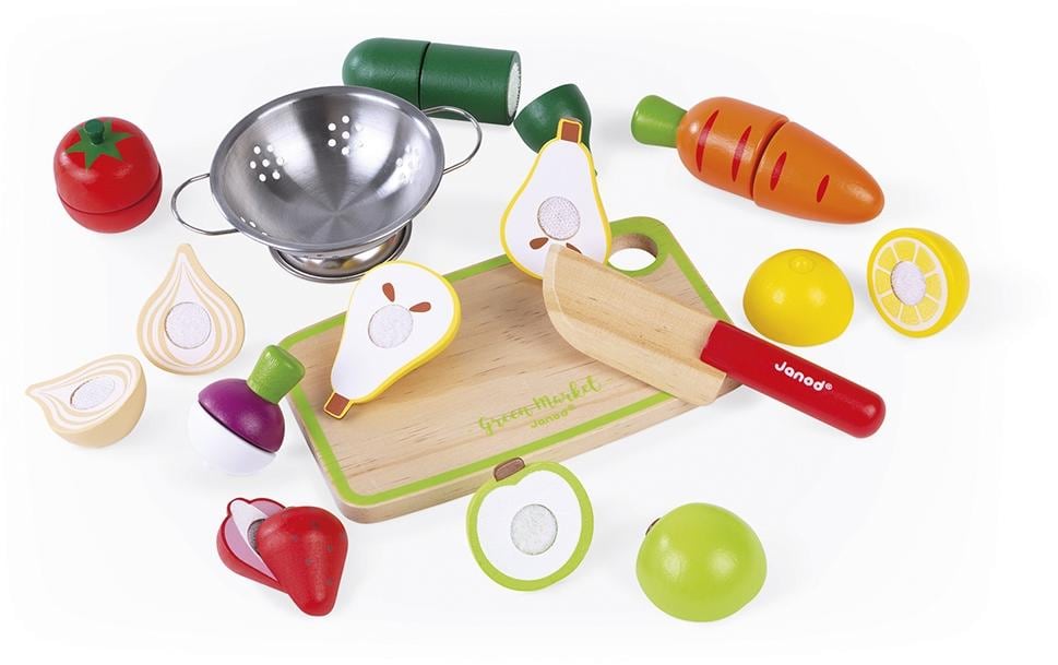 Janod Obst- und Gemüse-Set «Green Market» mit Zubehör im Kasten Kategorie: Lebensmittel, Altersempfehlung ab: 3 Jahren, Material: Holz, Metall, Nachhaltigkeit: Keine Zertifizierung