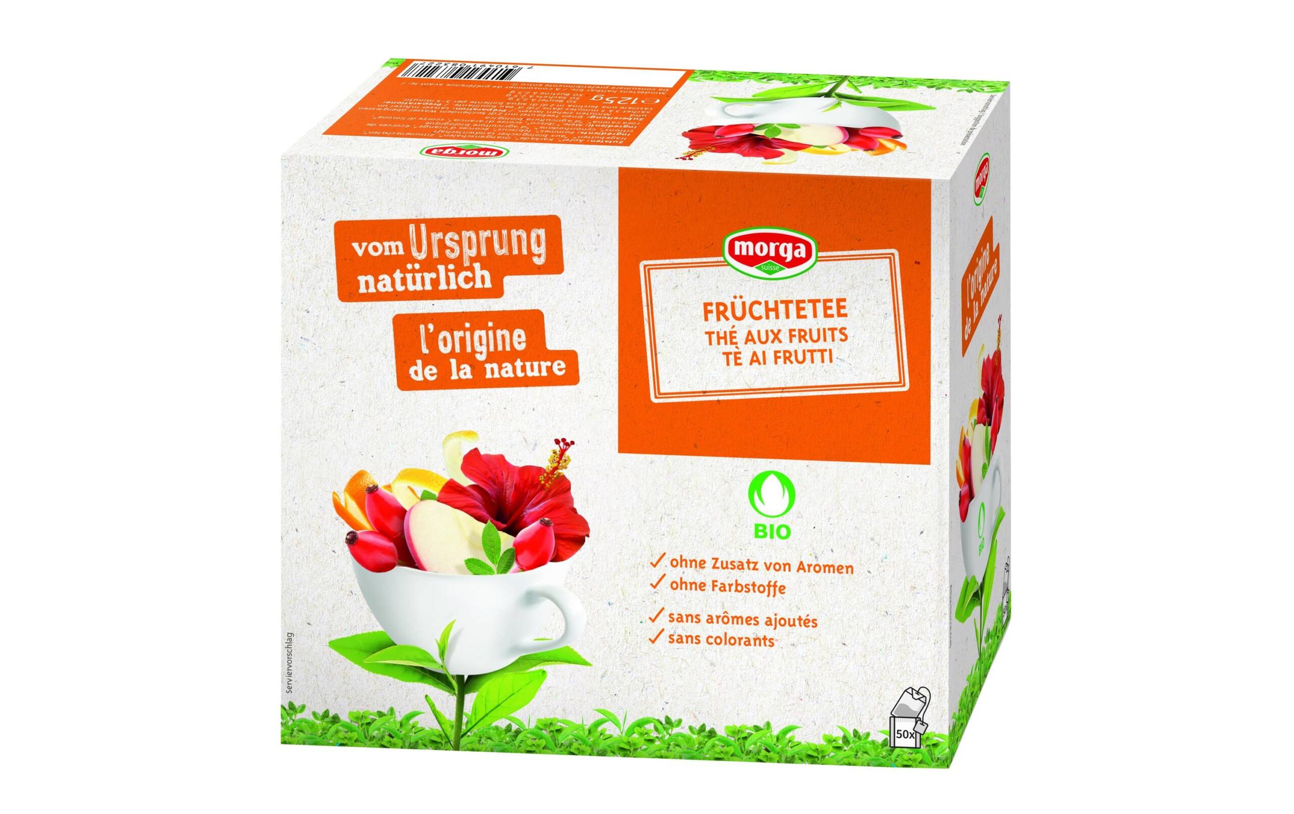 Morga Teebeutel Bio Früchtetee 50 Beutel Teesorte/Infusion: Früchtetee, Nachhaltigkeit: Bio Knospe, Packungsgrösse: 50 Stück, Fairtrade: Nein, Teeform: Teebeutel, Bio: Ja
