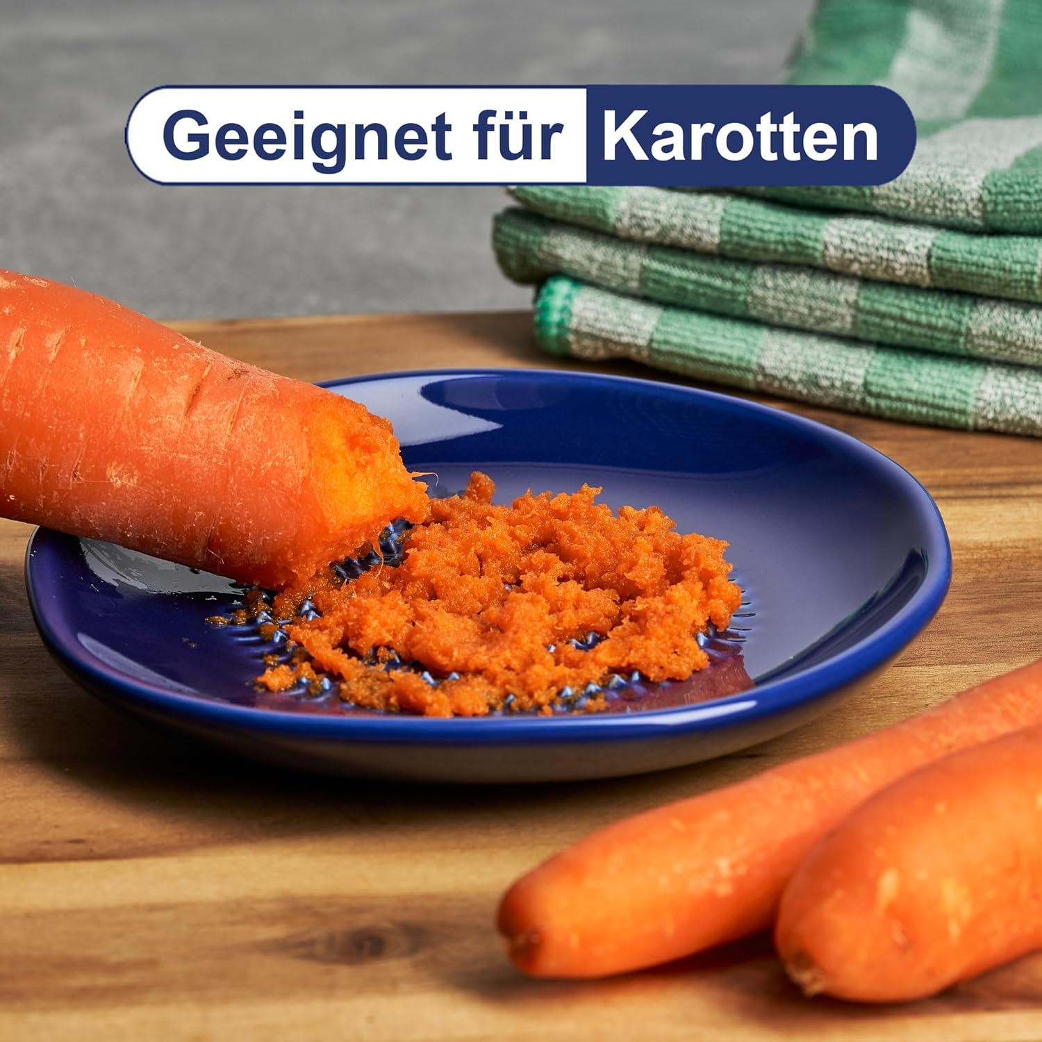 Unsere Keramikreibe ist speziell dafür entwickelt, die Aromen Ihrer frischen Zutaten hervorzuheben. Sei es Ingwer, Knoblauch, Kurkuma oder Zitronenschale, diese Reibe entfaltet die natürlichen Geschmäcker Ihrer Lebensmittel auf eine Weise, die herkömmliche Reiben nicht können. Die glatte, lackierte Oberfläche ist nicht nur einfach in der Handhabung, sondern erleichtert auch das Reiben frischer Zutaten, was sie zum idealen Werkzeug für Hobby- und Profiköche macht.