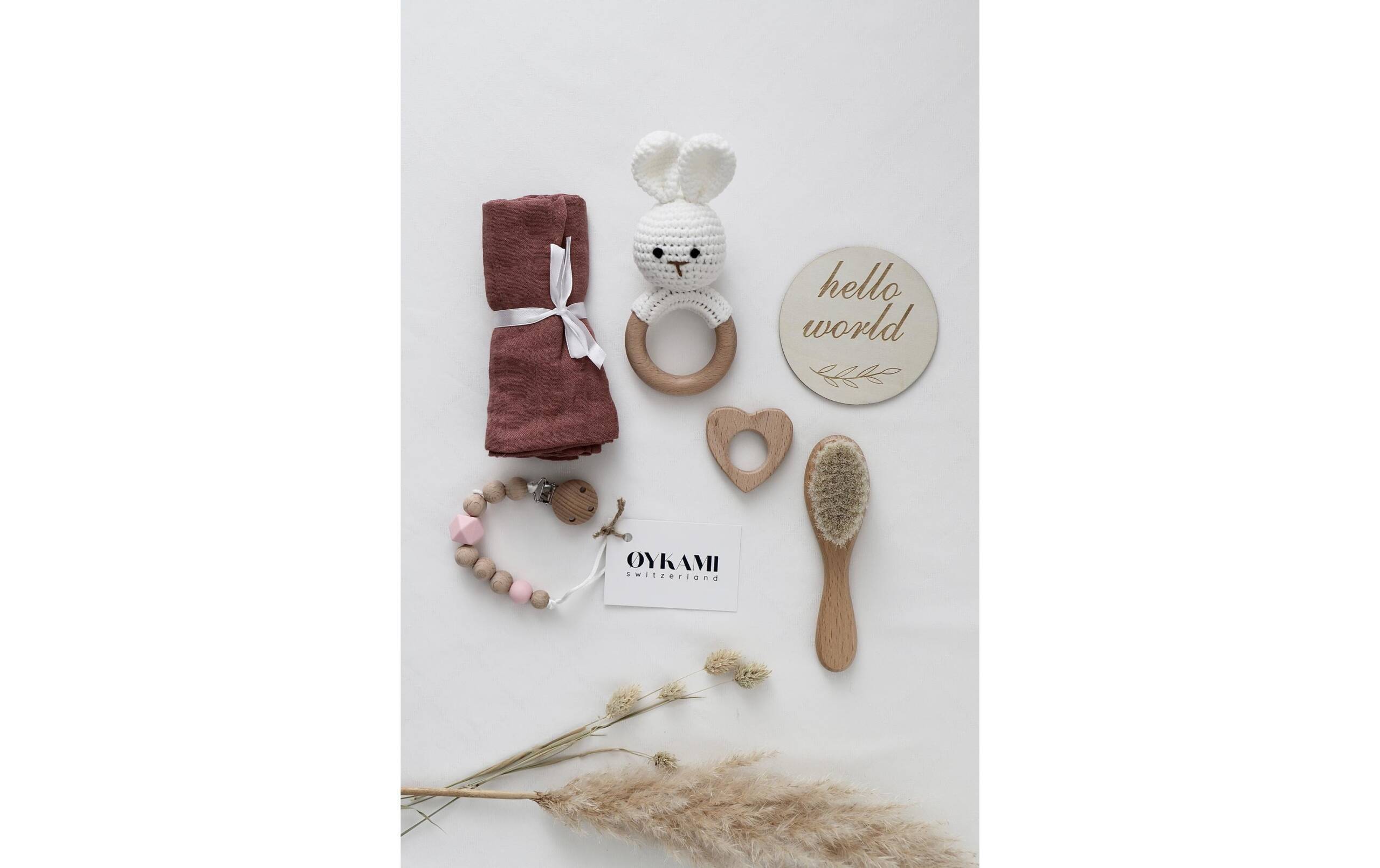 Oykami Geschenkset Mädchen Honolulu Material: Baumwolle, Holz, Detailfarbe: Beige, Rosa, Weiss