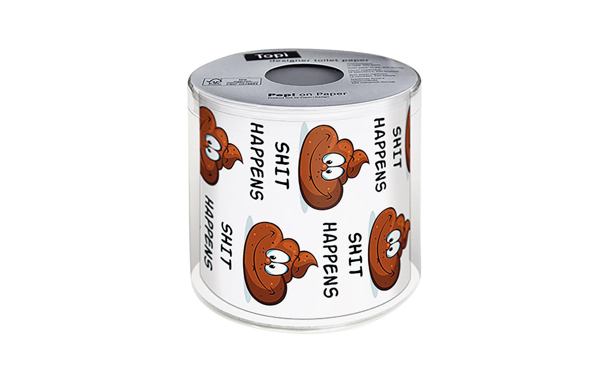 Paper + Design Toilettenpapier Shit Happens Rollen, 3-lagig, Mehrfarbig Natürlich Leben: Keine Besonderheiten, Anzahl Rollen: 1, Anzahl Lagen: 3, Anzahl Blatt: 200 ×, Detailfarbe: Mehrfarbig