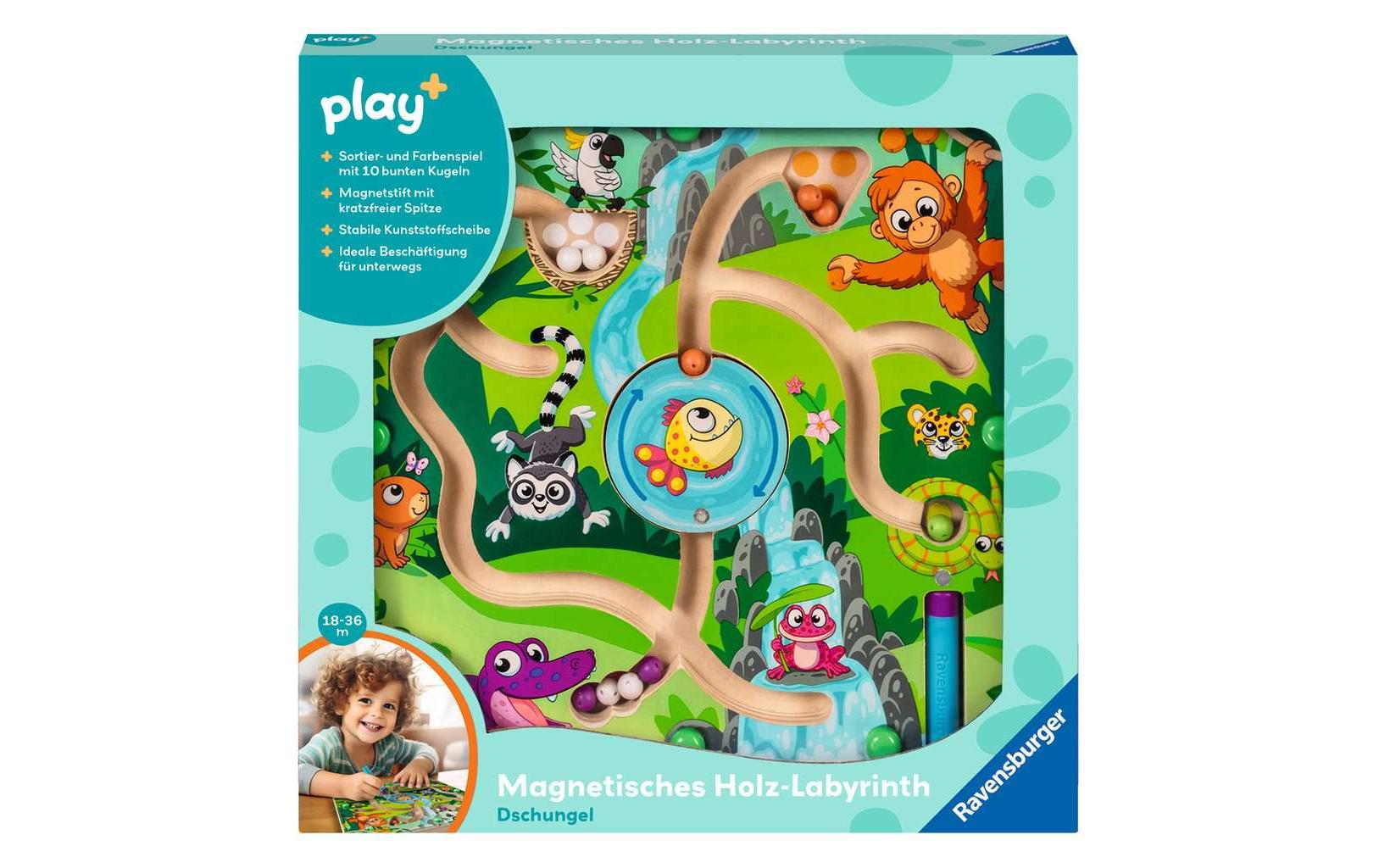 play+ Magnetlabyrinth Dschungel Altersempfehlung ab: 18 Monaten, Material: Holz, Nachhaltigkeit: FSC®, Detailfarbe: Mehrfarbig