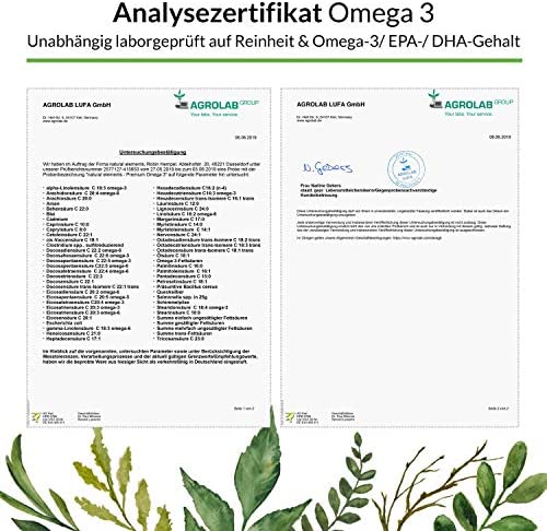 - UNABHÄNGIG LABORGEPRÜFT auf Omega-3-Gehalt, EPA-Gehalt, DHA-Gehalt, Schwermetalle, Salmonellen, Schimmelpilze und mehr. Die Untersuchung wird von einem deutschen nach DIN EN ISO/IEC 17025 zertifizierten Labor durchgeführt. (Analysezertifikat: Siehe Produktbilder)