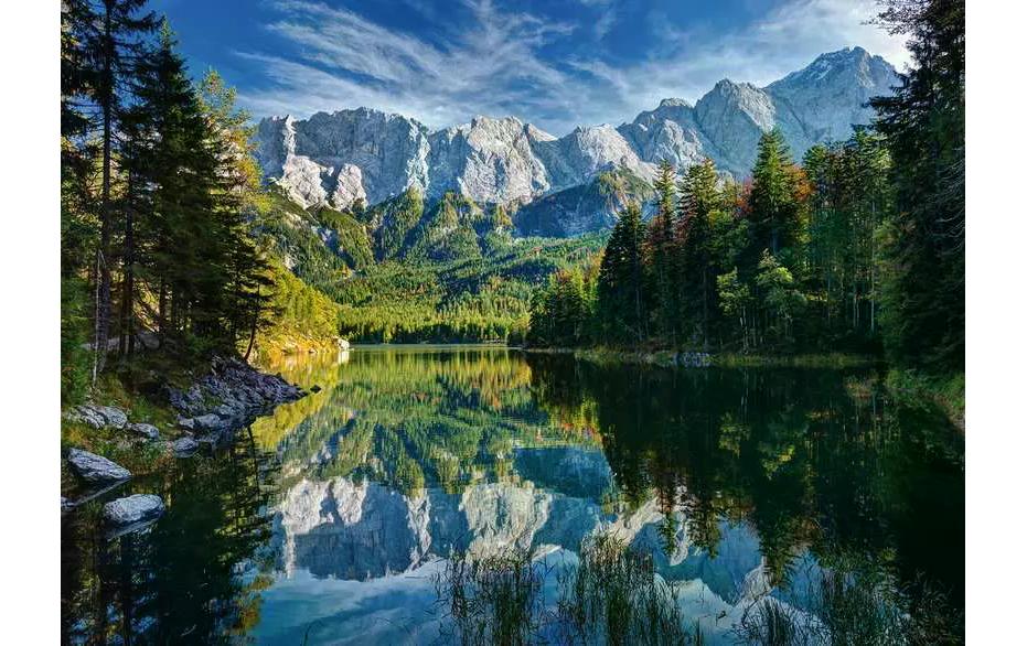 Ravensburger Puzzle Eibsee mit Wettersteingebirge Motiv: Landschaft / Natur, Altersempfehlung ab: 14 Jahren, Tiefe: 70 cm, Breite: 50 cm, Effekte: Keine, Nachhaltigkeit: Nicht angegeben