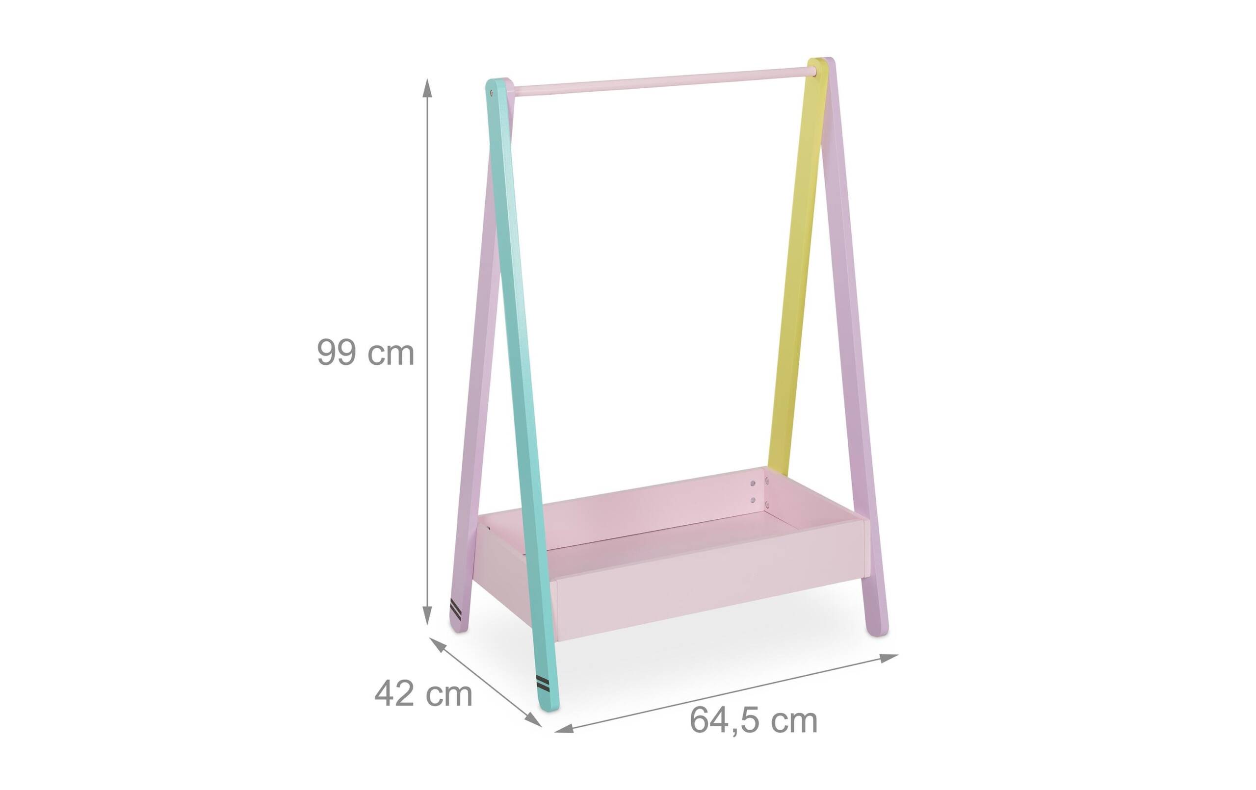 relaxdays Kleiderständer für Kinder 64.5 x 99 cm, Gelb/Rosa/Türkis Material: Kiefernholz, MDF, Nachhaltigkeit: Nicht angegeben, Produkttyp: Garderobenständer, Detailfarbe: Gelb, Rosa, Türkis