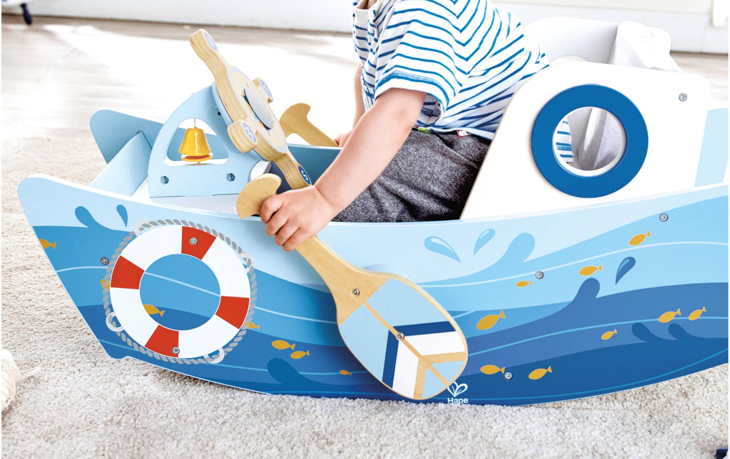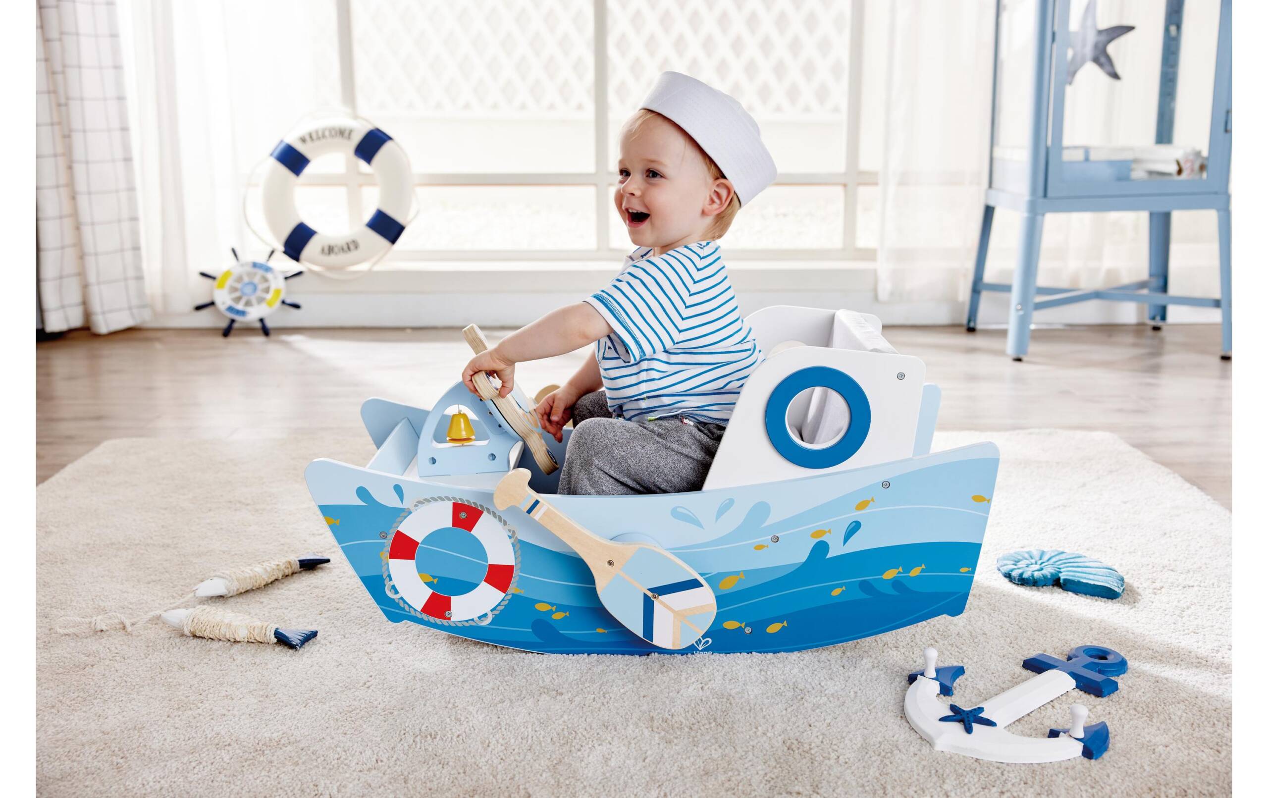 Hape Beschäftigungsspielzeug Captain’s Rocking Boat Altersempfehlung ab: 1 Jahr, Material: Holz, Nachhaltigkeit: FSC®, Detailfarbe: Blau, Weiss