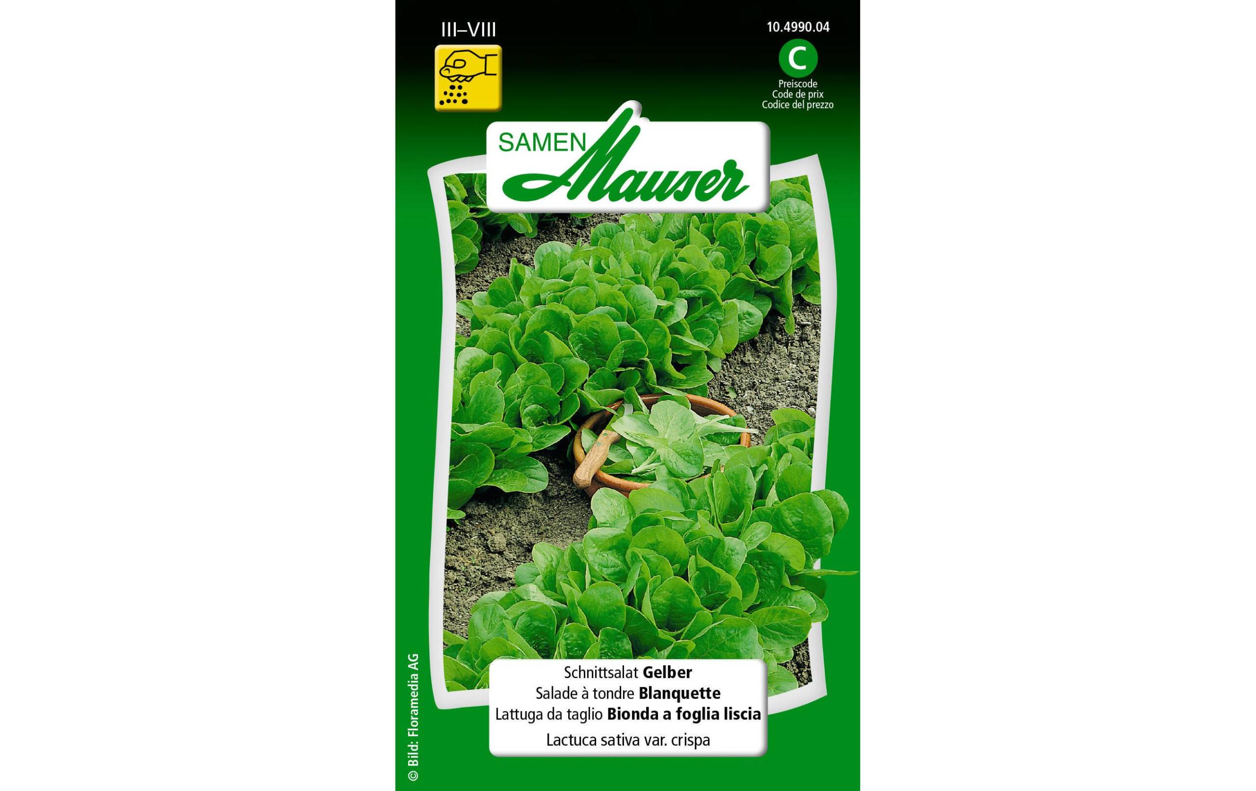Samen Mauser Samen Schnittsalat Gelber Bio: Nein, Sonneneinstrahlung: Sonnig – halbschattig, Aussaatzeit: April, August, Juli, Juni, Mai, März, Saattyp: Saatgut, Gemüsegruppen: Salat, Erntezeit: April, August, Juli, Juni, Mai, Oktober, September