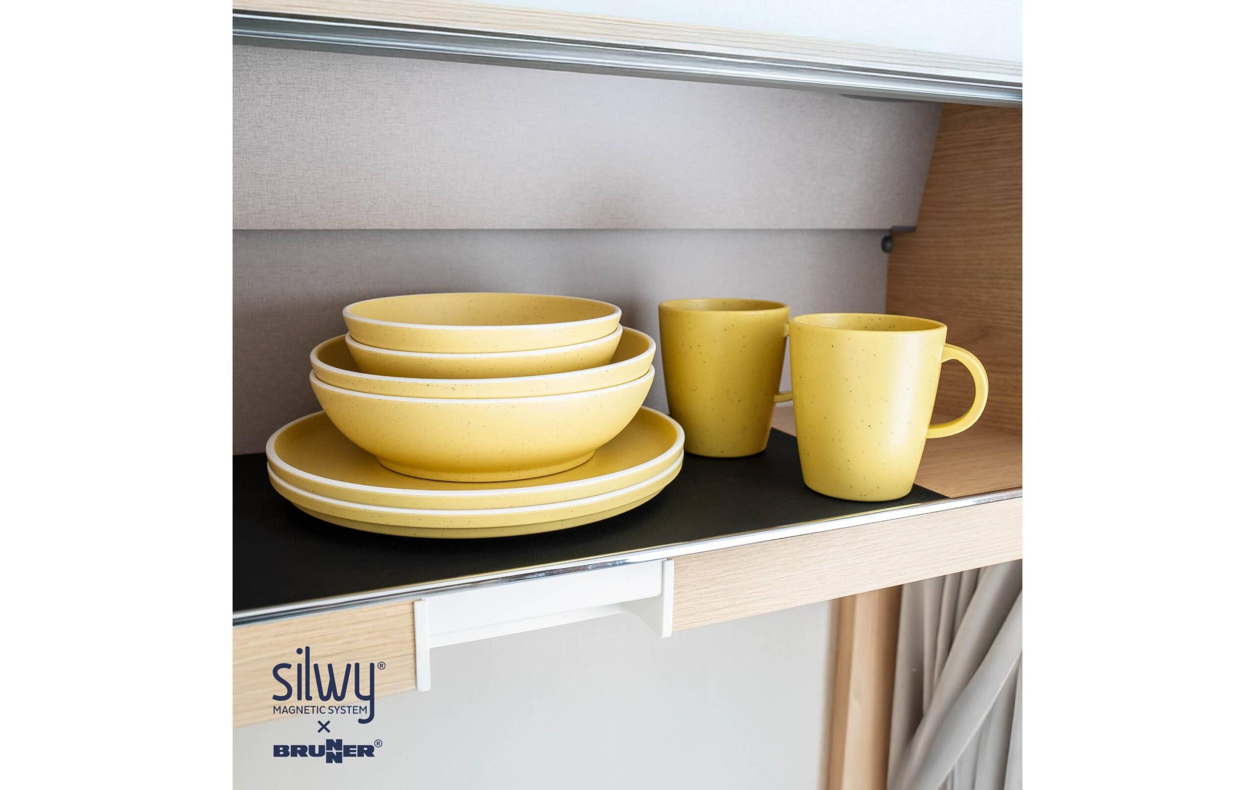 Silwy Magnet-Kunststoff-Geschirrset Dolomit Yellow Produkttyp: Geschirr-Set, Material: Kunststoff, Biologisch abbaubar: Keine Angaben, Nachhaltigkeit: Nicht angegeben, Set: Ja, Zusammenklappbar: Keine Angaben
