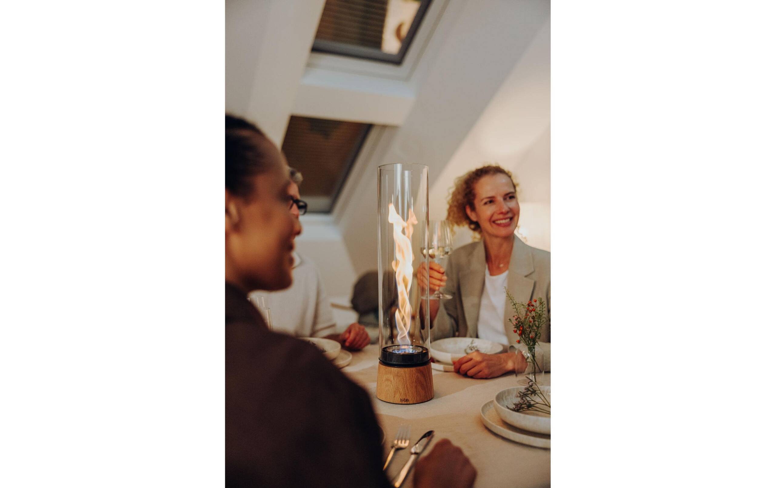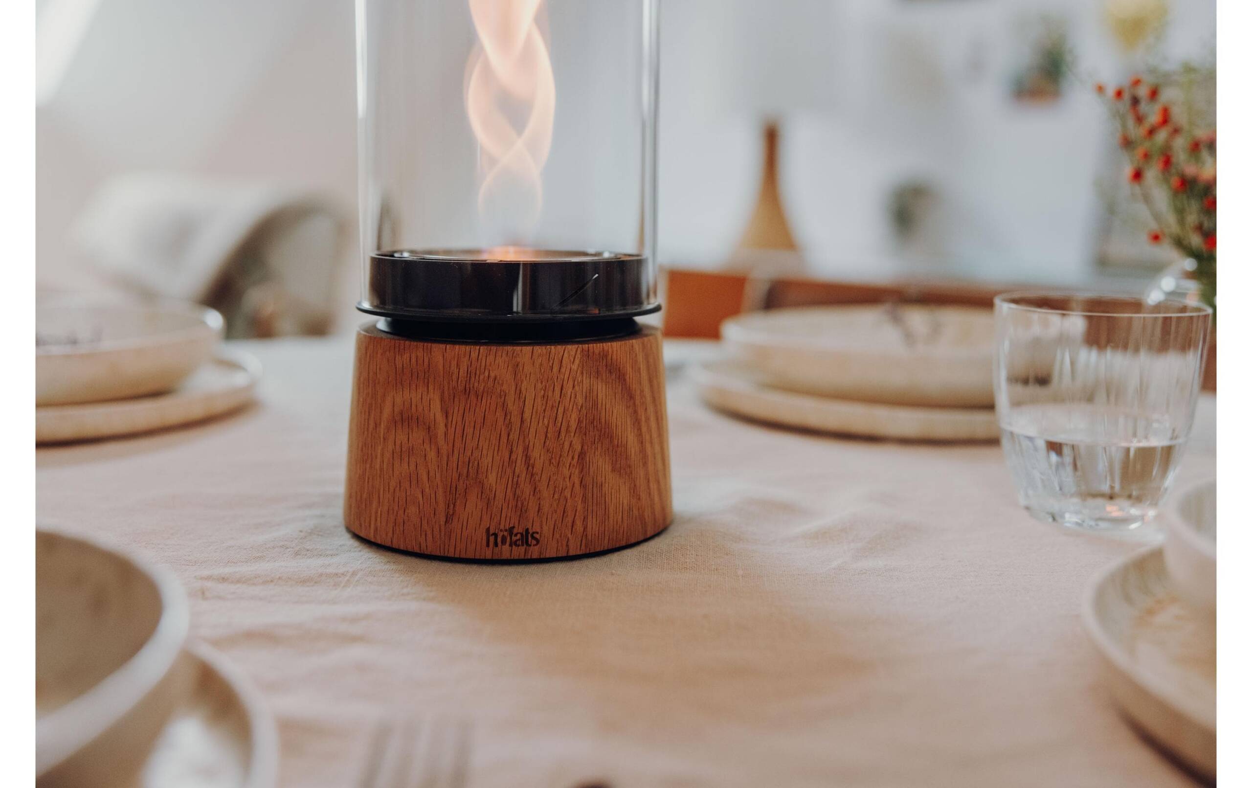 Höfats Tischfeuer Spin air 1200 Eiche Höhe: 54 cm, Durchmesser: 13.8 cm, Zusatzausstattung: Keine, Typ: Ambiente, Material: Borosilikatglas, Holz