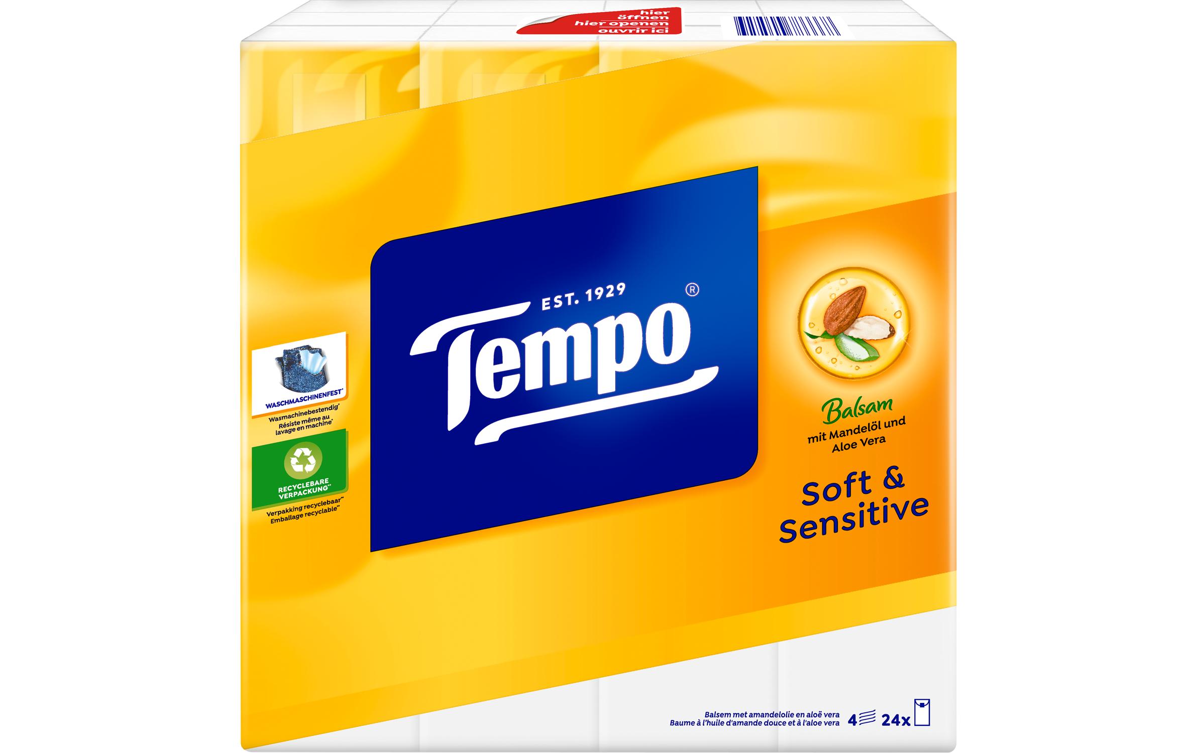 Tempo Taschentücher Soft & Sensitive 4-lagig 24 x 9 Stück Packungsgrösse: 9 Stück, Natürlich Leben: Keine Besonderheiten, Anzahl Lagen: 4, Verpackungseinheit: 24 Stück