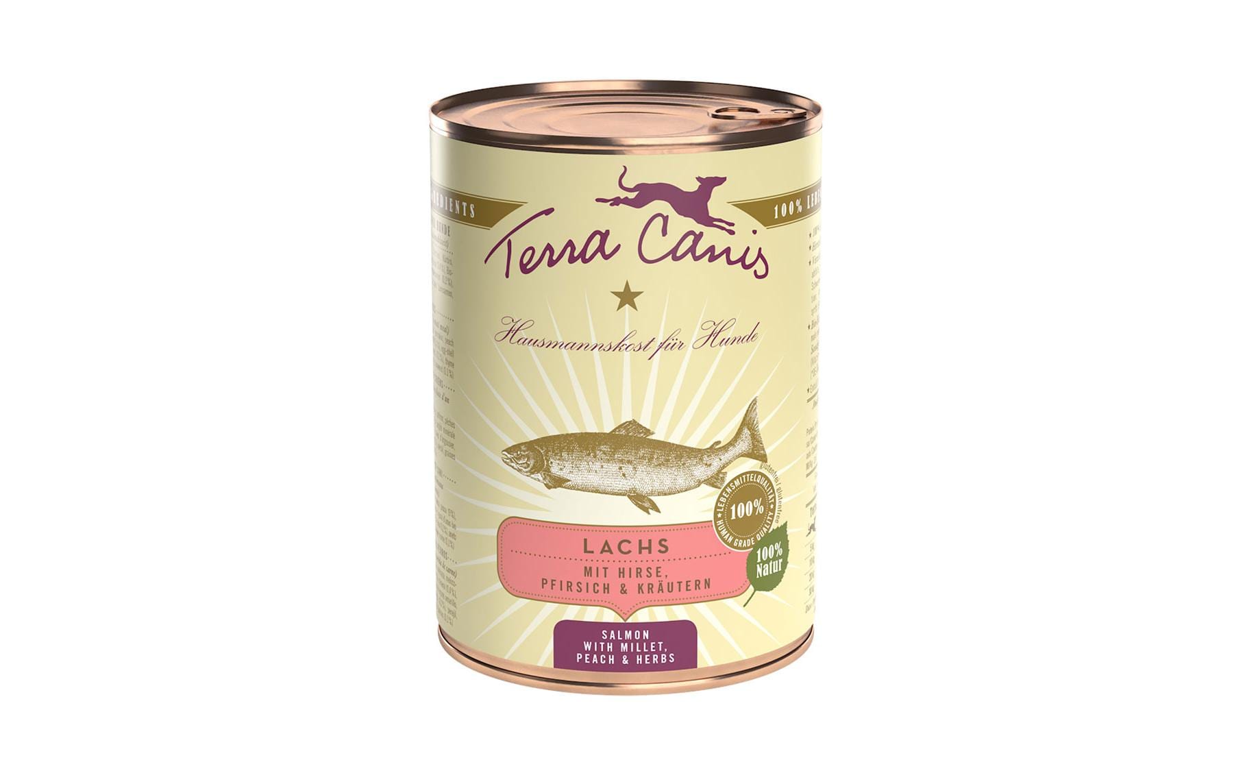 Terra Canis Nassfutter Classic Lachs, 400 g Tierbedürfnis: Kein besonderes Bedürfnis, Zertifikate: Keine Zertifizierung, Fleischsorte: Lachs, Futtereigenschaft: Glutenfrei, Ohne künstliche Zusätze, Produkttyp: Alleinfutter, Packungsgrösse: 400 g