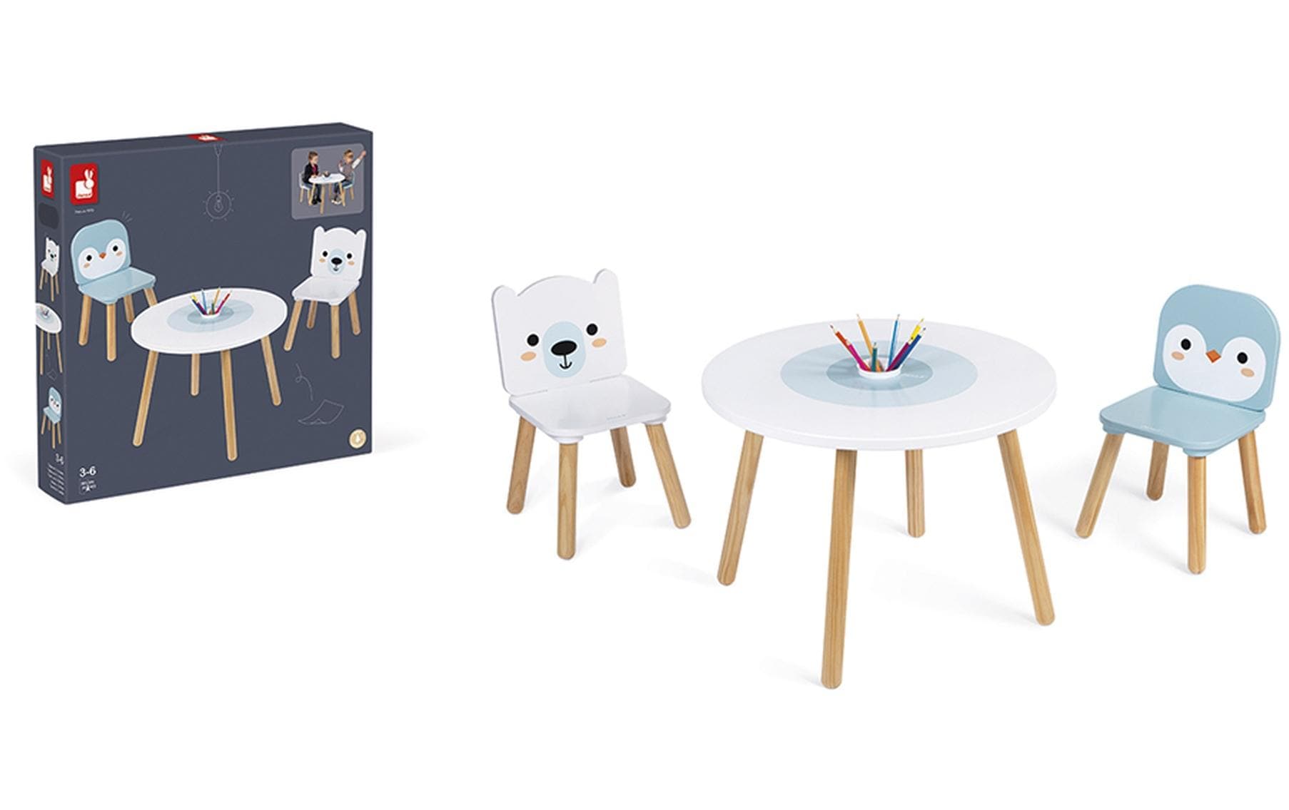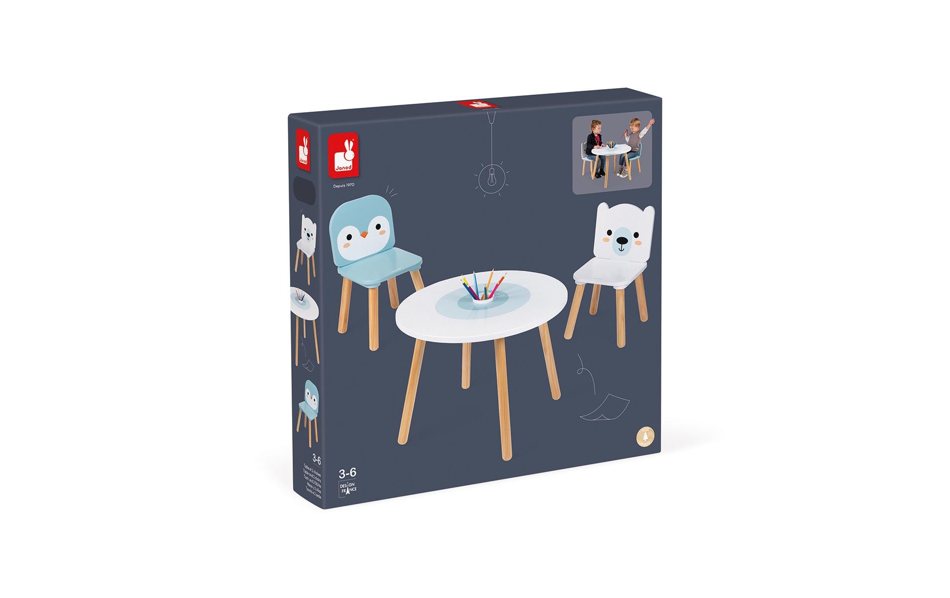 Janod Kindertisch- und Stuhlset Arktis 3-teilig Detailfarbe: Hellblau, Nature, Weiss, Aussenanwendung: Nein, Nachhaltigkeit: Keine Zertifizierung, Themenwelt: Tiere