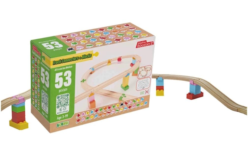 AlphaBoosterz TrackConnectors + Blocks – all in one Block Box M Kategorie: Zubehör, Altersempfehlung ab: 3 Jahren, Material: Bio-Kunststoff, Nachhaltigkeit: Keine Zertifizierung