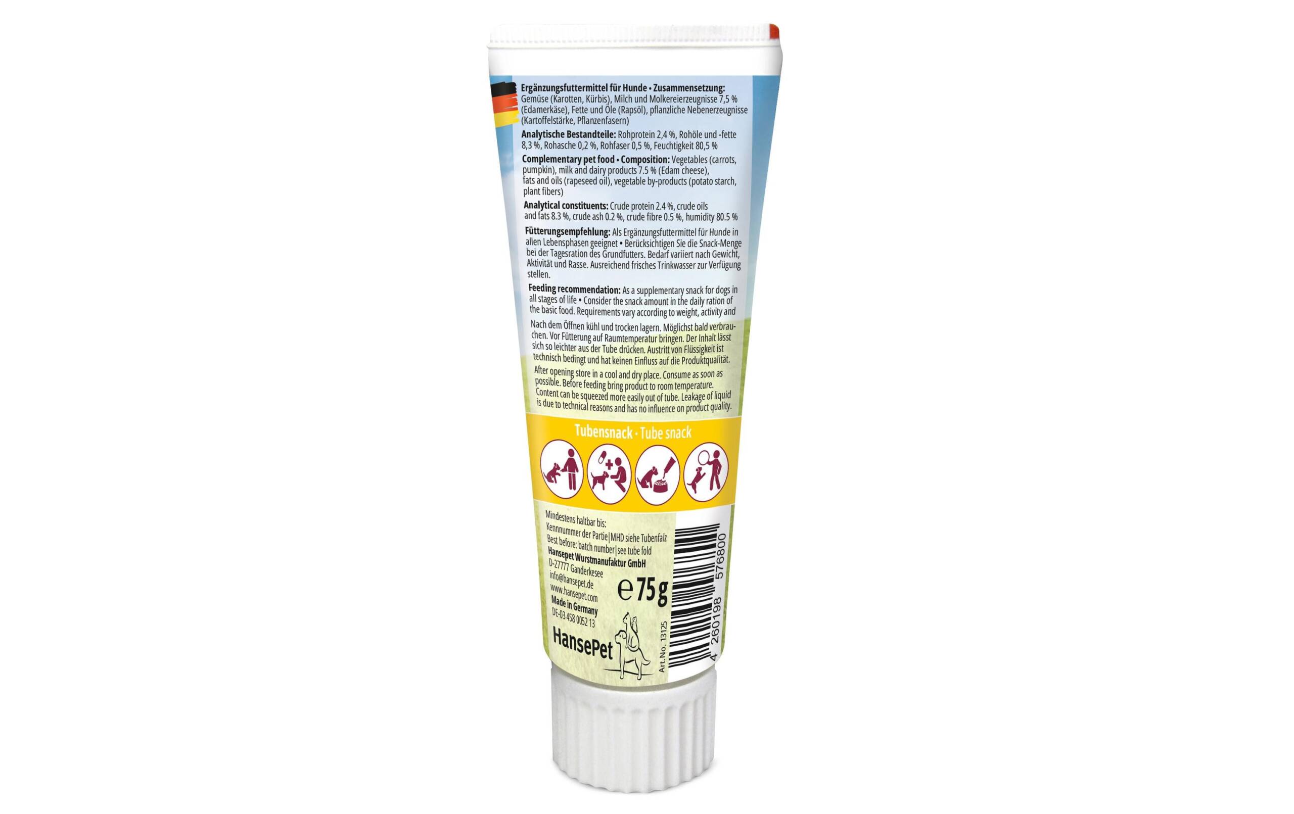 Tubidog Leckerli Käsecreme, 75 g Snackart: Leckerli, Tierbedürfnis: Appetit anregend, Zertifikate: Keine Zertifizierung, Fleischsorte: Vegetarisch, Futtereigenschaft: Getreidefrei, Ohne künstliche Zusätze, Ohne Zuckerzusatz, Produkttyp: Ergänzungsfutter
