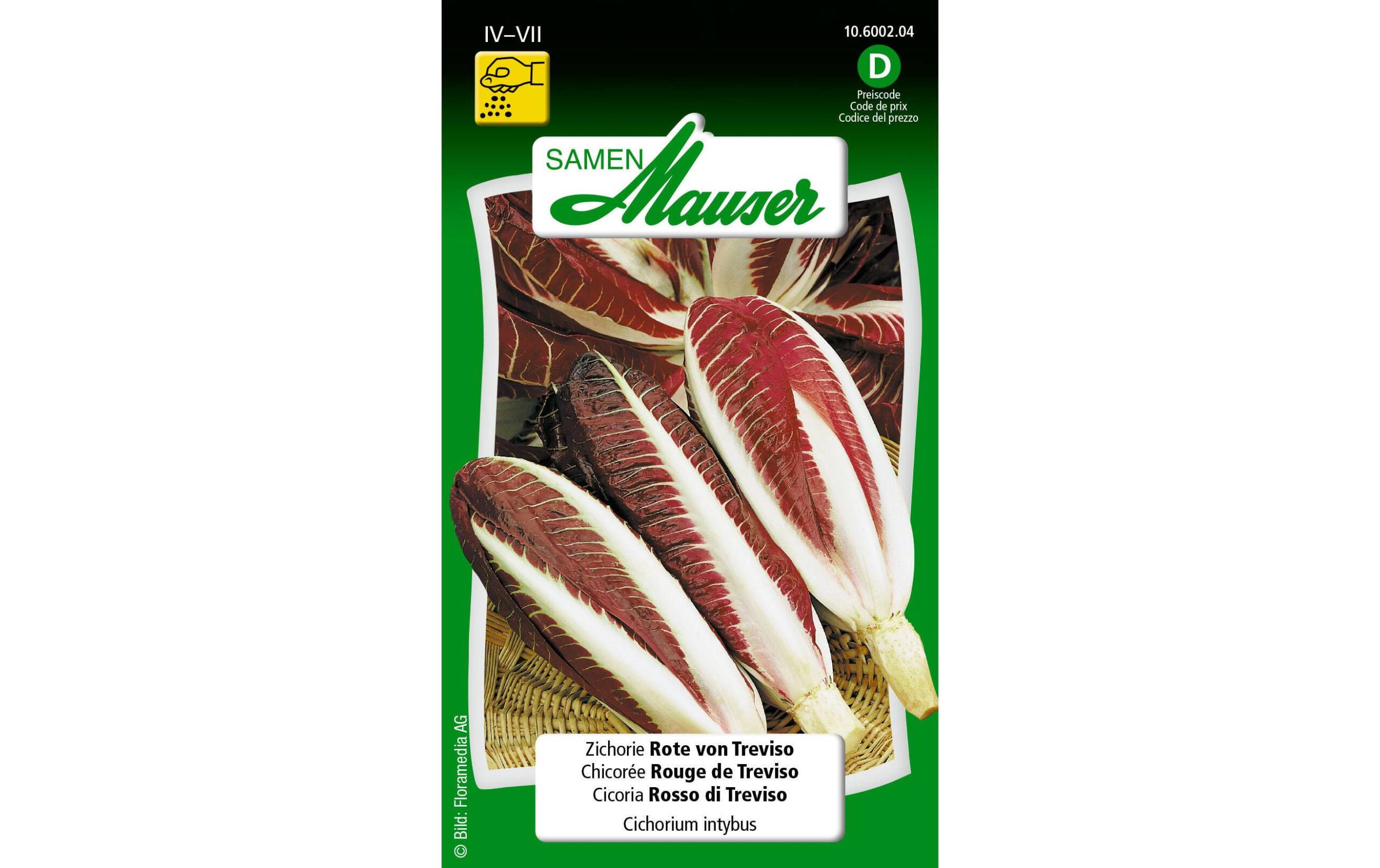 Samen Mauser Samen Zichorie Rote von Treviso Bio: Nein, Sonneneinstrahlung: Sonnig – halbschattig, Aussaatzeit: April, Juli, Juni, Mai, Saattyp: Saatgut, Gemüsegruppen: Blatt- und Stängelgemüse, Salat, Erntezeit: Dezember, Januar, November